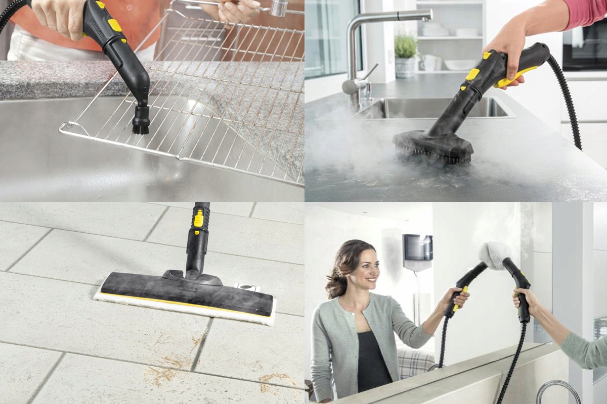 Пароочиститель, подходящий для различных требований. Одно из его преимуществ – гигиеническая чистка без моющих средств. Мытье поверхностей пароочистителем гарантирует более высокую эффективность, чем использование традиционных методов с чистящим средством. Время уборки можно сократить вдвое! Высокая температура также нейтрализует большинство микроорганизмов.