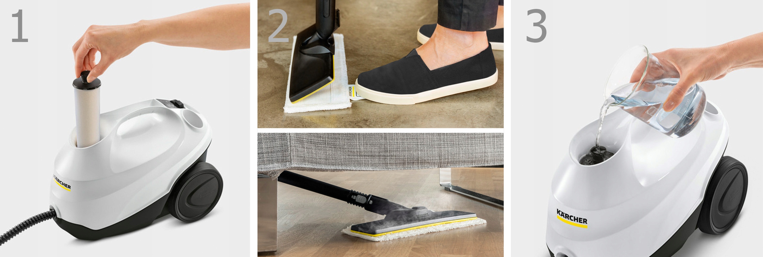 Пароварка SC 3 EASYFIX Karcher отлично работает на всех водонепроницаемых поверхностях.