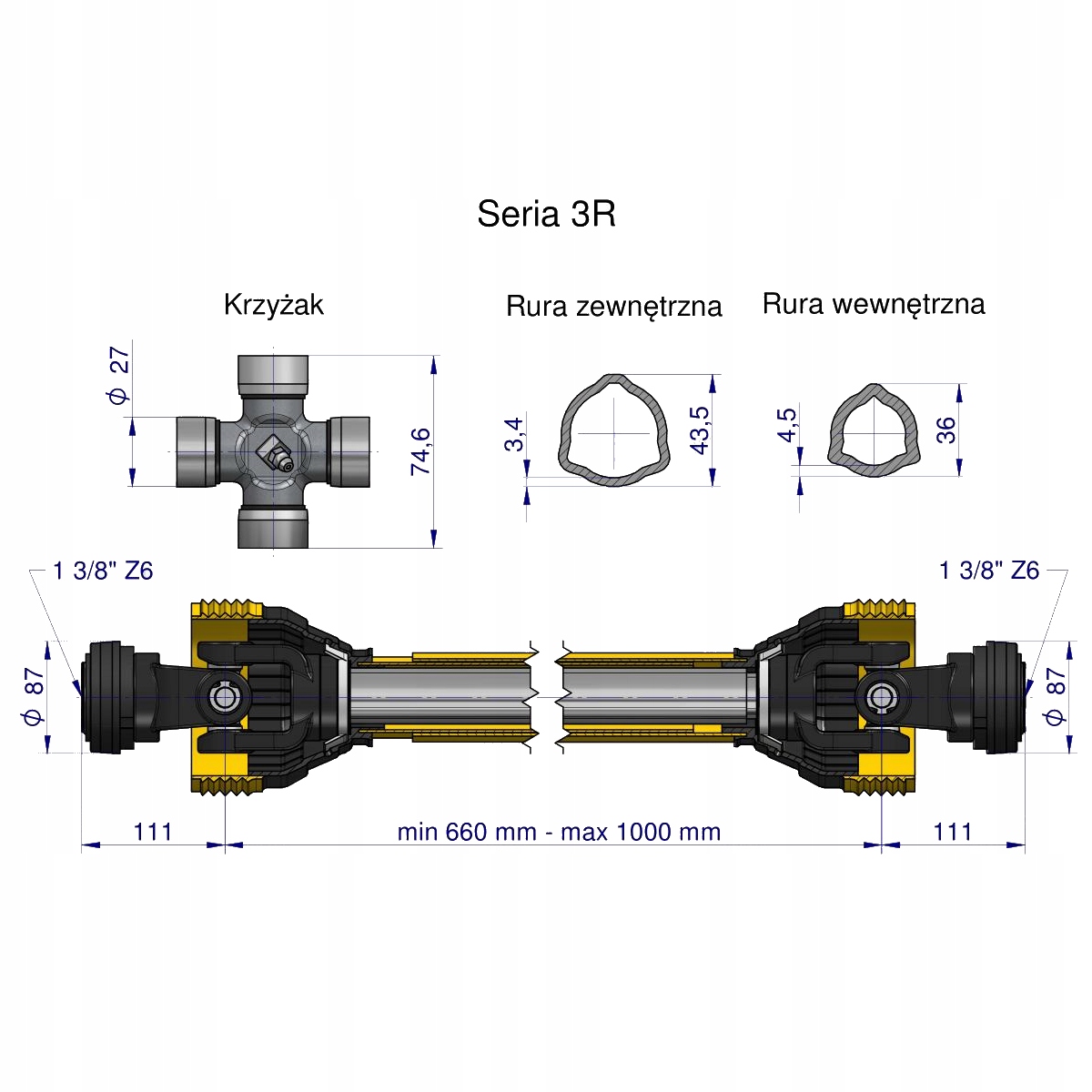 Карданний вал 660-1000 мм 460 Нм Waryńs