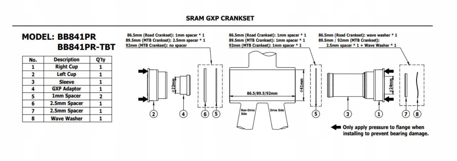 Нижний кронштейн BB841PR предназначен для шатунов SRAM GXP (24–22 мм)