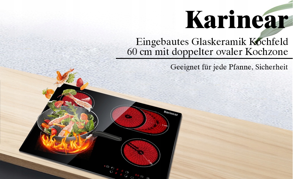 Встраиваемая керамическая варочная панель Karinear, 4 конфорки, с двойной выдвижной зоной, встроенным электрическим столом с сенсорным управлением, таймером, блокировкой от детей, 6600 Вт