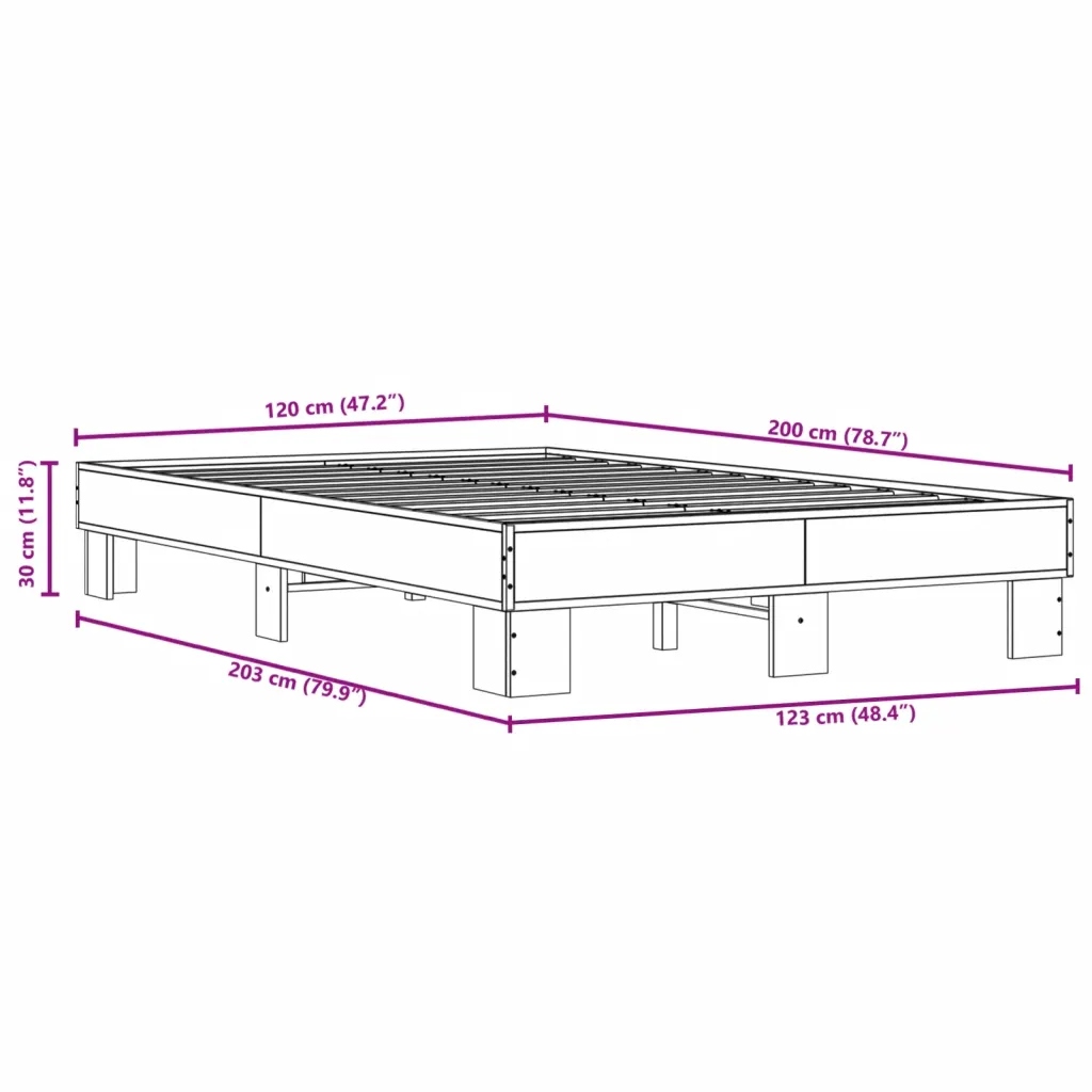 Каркас кровати Sonoma дуб 203 x 123 x 30 см, дерево, металл