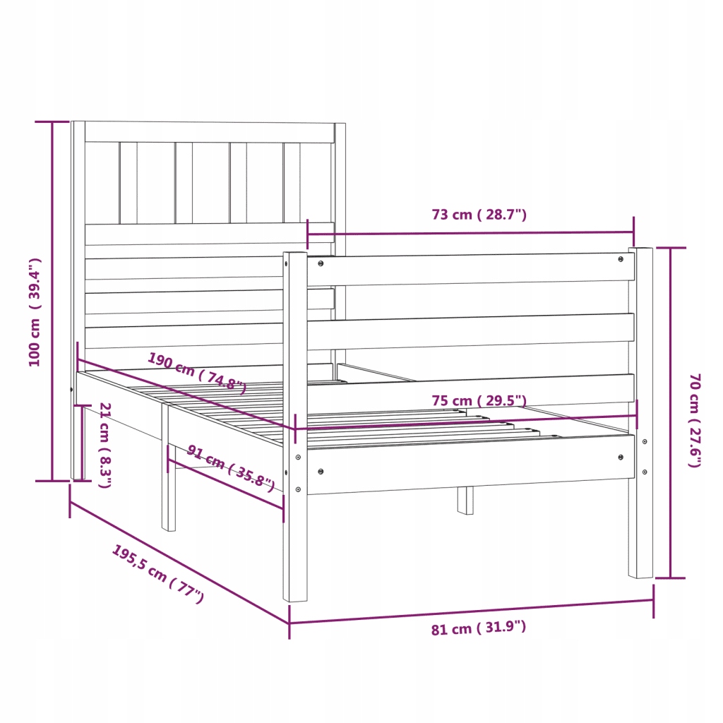 - Размеры: Каркас кровати: 195,5 x 81 x 100 см (Д x Ш x В)