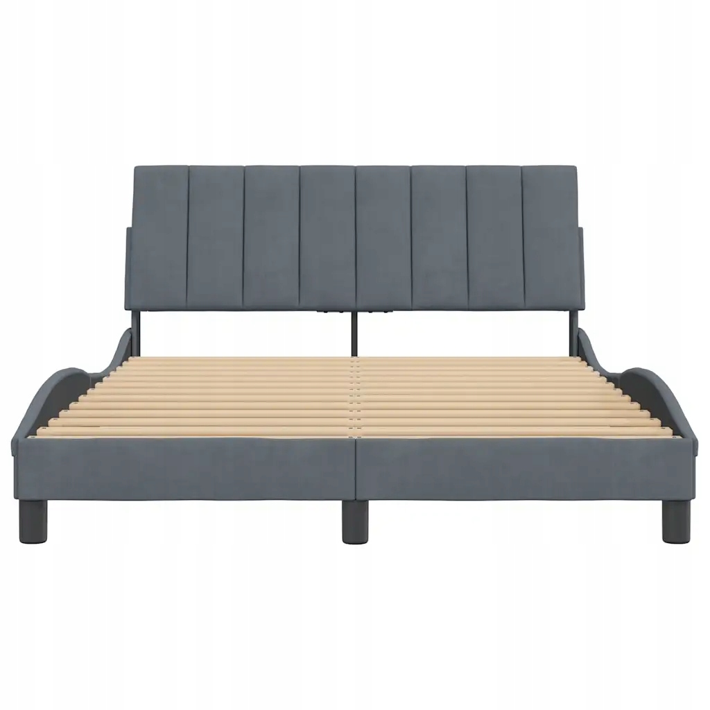 Каркас кровати с изголовьем, бархат, темно-серый, 208х145х74,5 см
