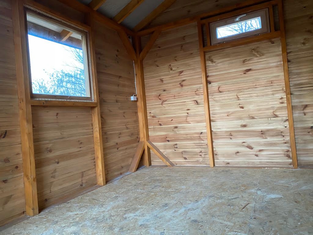 - Здание размерами 4 х 4 м, деревянное по каркасной системе, крытое с фасадной доской