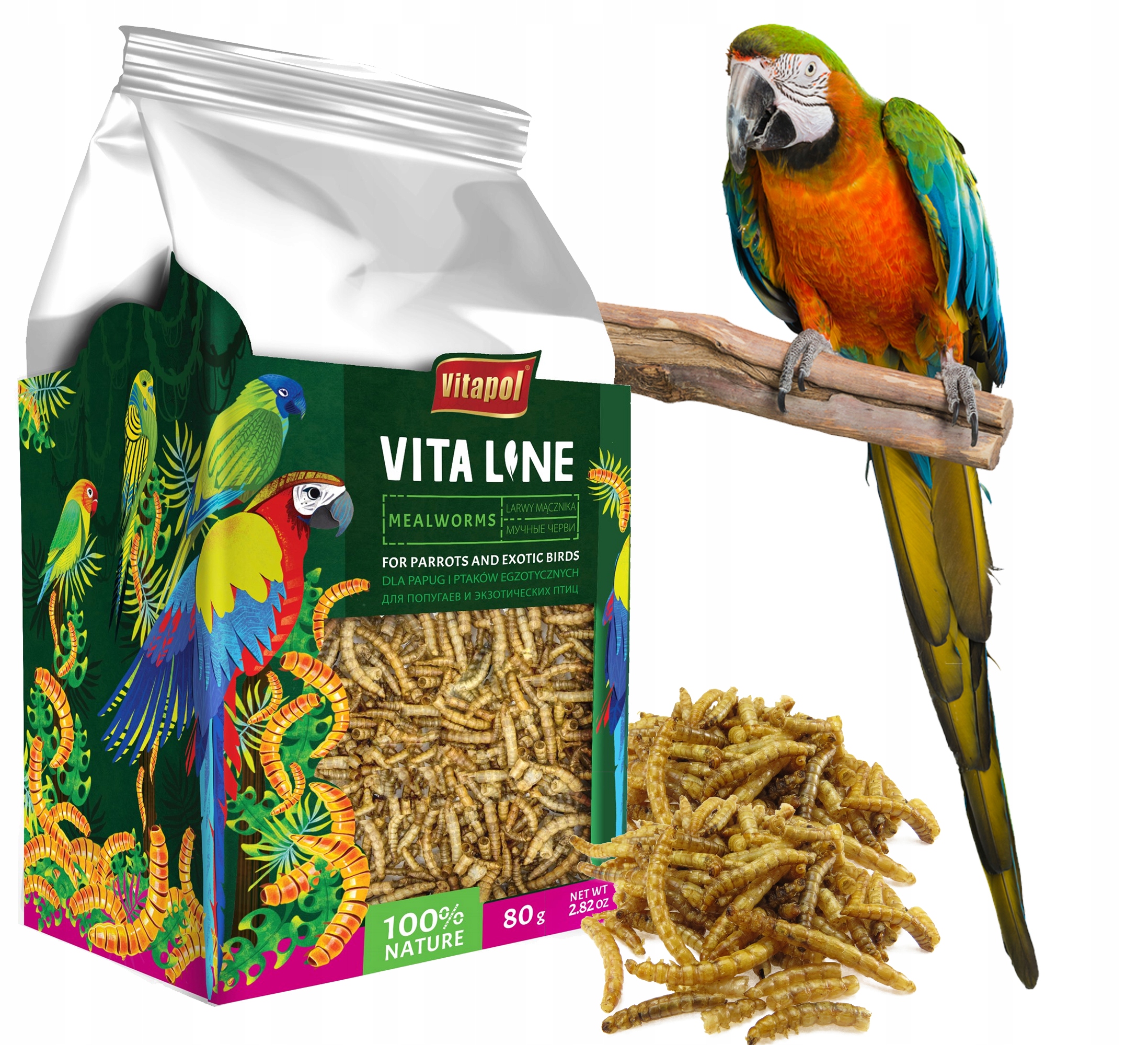 VITA LINE МУЧНЫЕ ЧЕРВИ ДЛЯ ПОПУГАЕВ И ЭКЗОТИЧЕСКИХ ПТИЦ 80Г