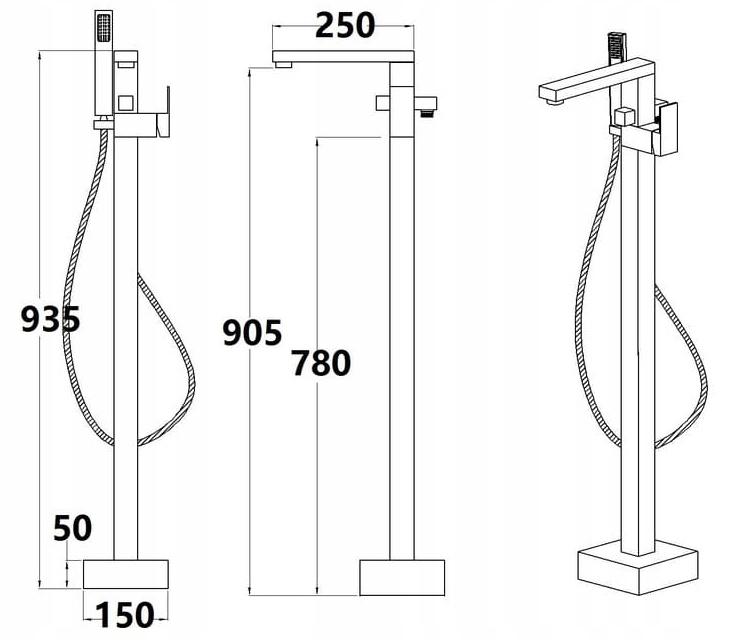 - Отдельностоящий смеситель для ванны.