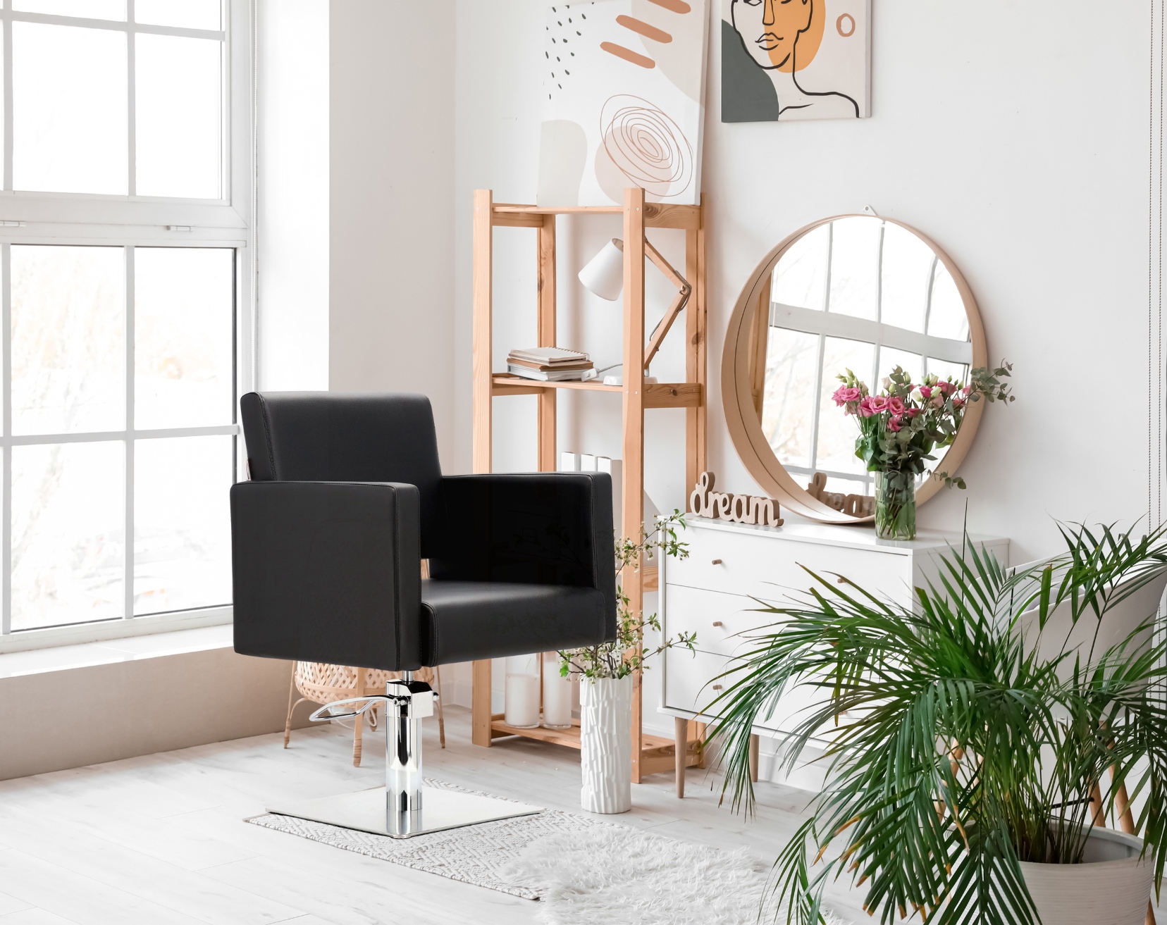 Кресло для парикмахера было изготовлено из качественных материалов -обивка эко -литерана, устойчивая к истиранию, Легко в чистке и комфортно для клиента, и основание от хромовой стальной гарантии и durability.