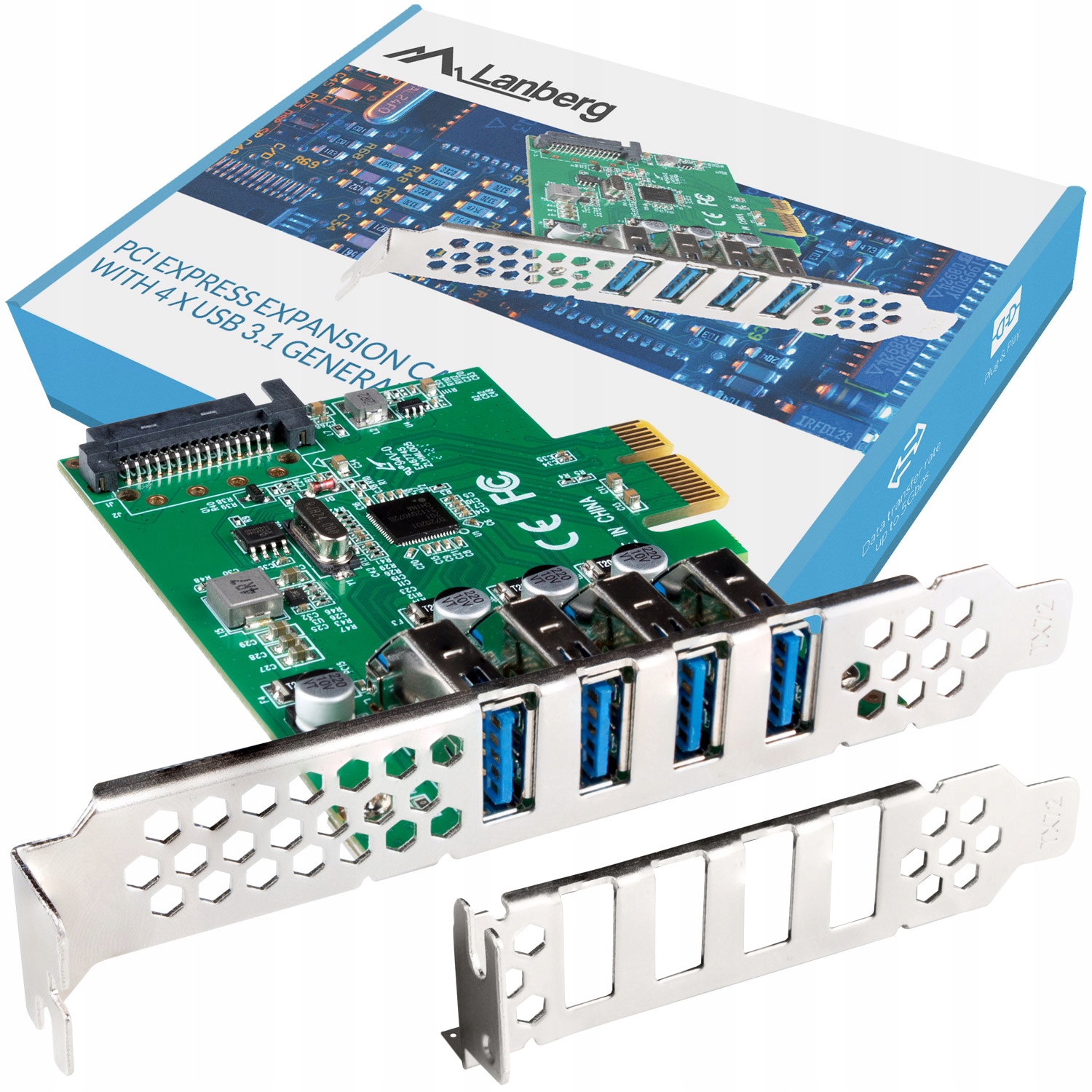 LANBERG USB 3.1, 4-портовая карта PCI Express + дорожка