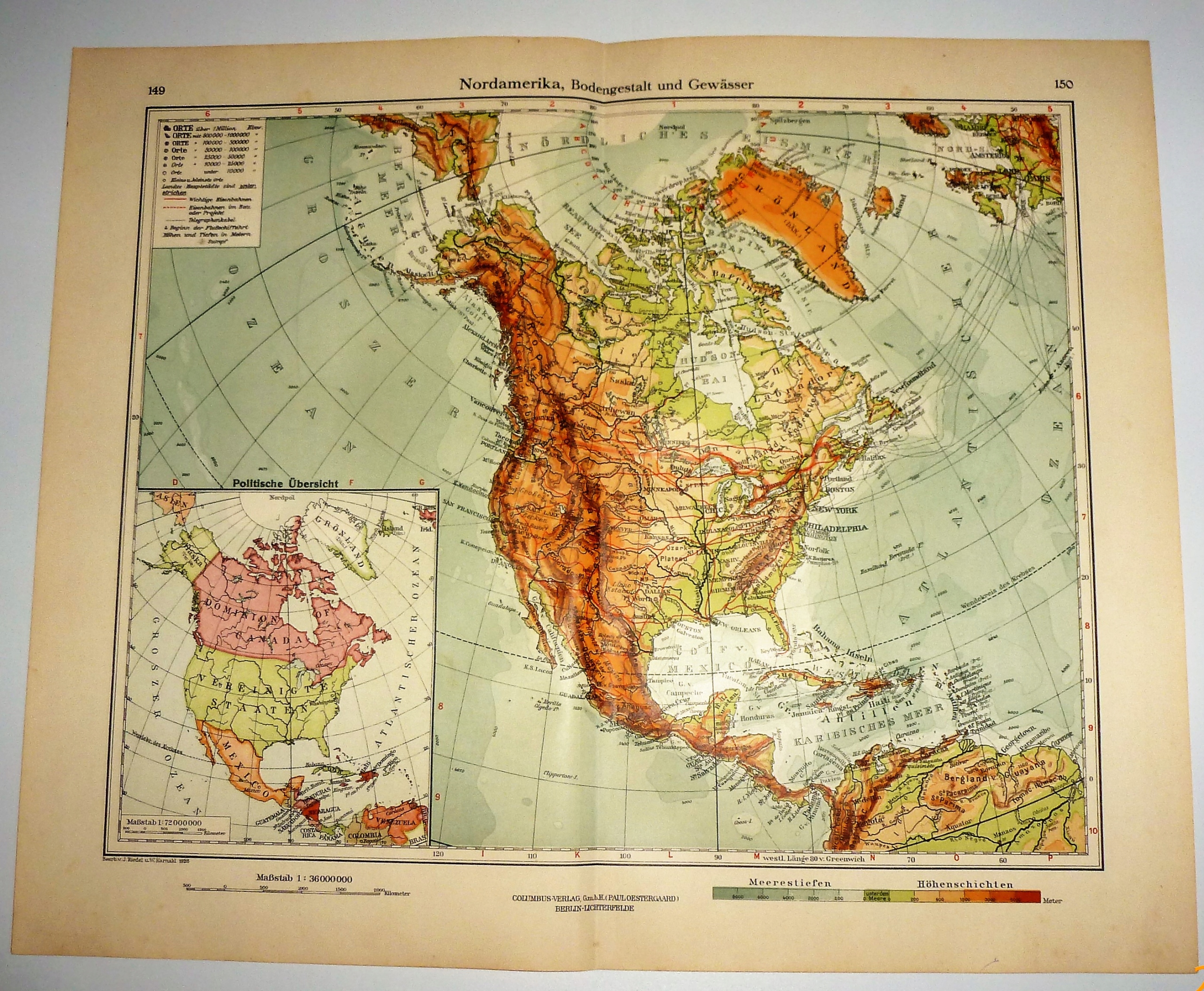 КАРТА ПІВНІЧНОЇ АМЕРИКИ 1934 Атлас Мінерви