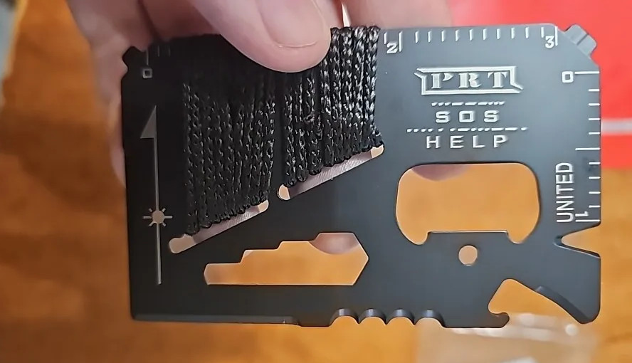 Карта имеет размер платежной карты и помещается в любое отделение кошелька или портативной сумки EDC. Он оснащен набором практичных инструментов и веревкой из паракорда. Полезно для повседневного использования и в экстренных ситуациях.