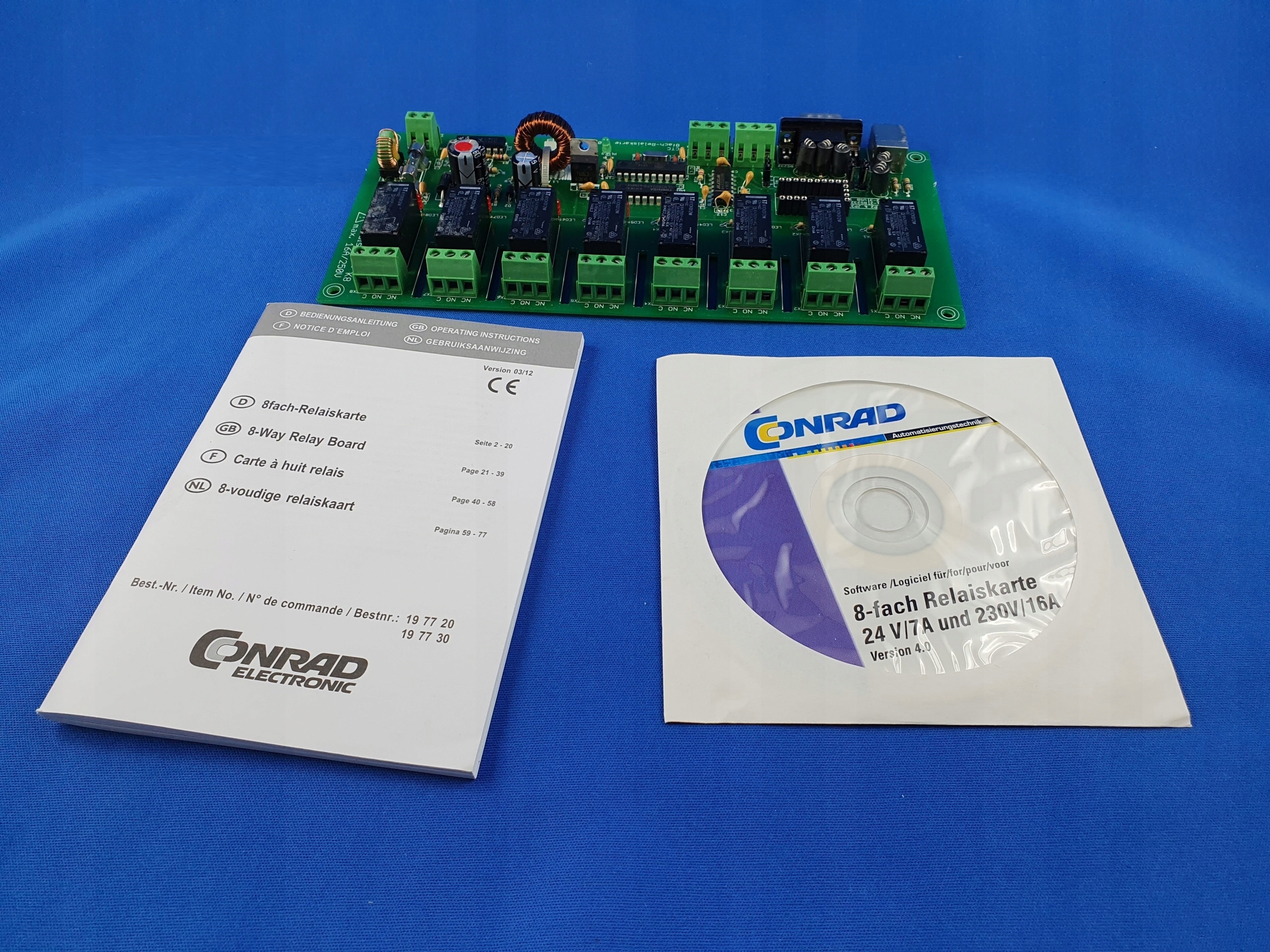 Conrad Components 197730 | Релейная плата для переключения нагрузок через RS232 или с дополнительной платой адаптера (номер для заказа 197257) с USB-подключением к компьютеру. Расширить коммутационные возможности реле; один интерфейс может поддерживать до 255 релейных карт.
