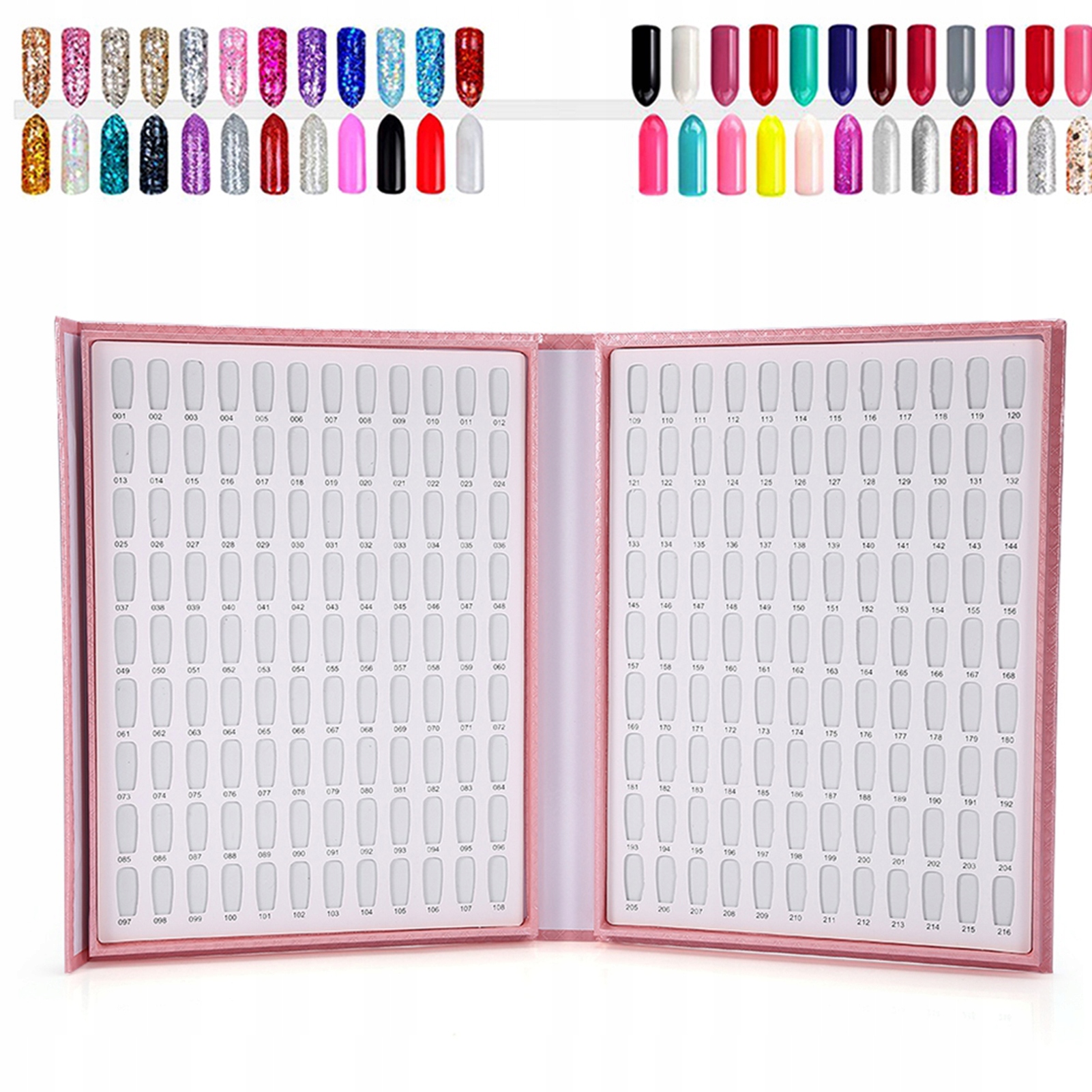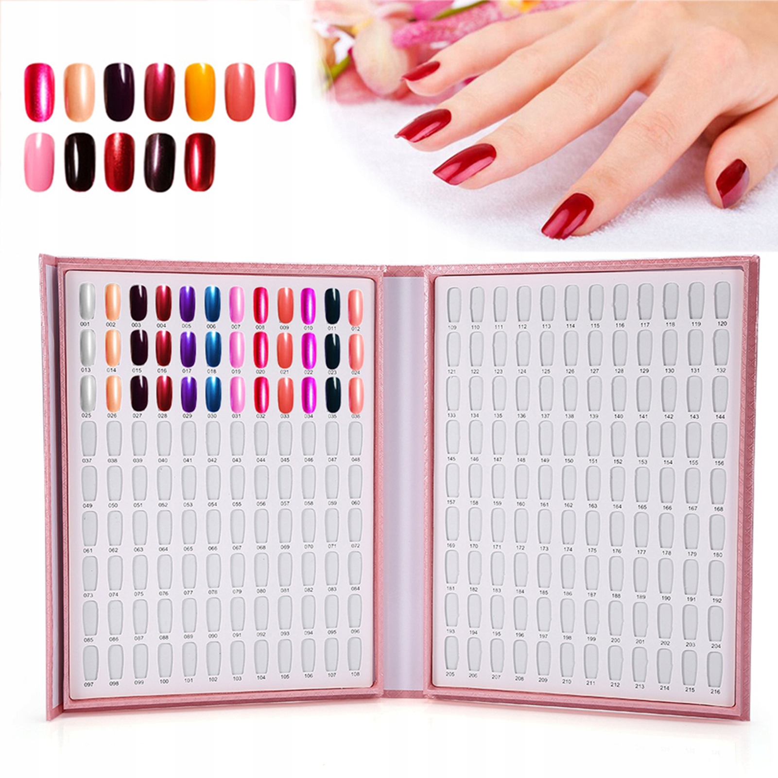 216 цветов. Таблица цветов геля для ногтей. Таблица цветов лака для ногтей. Книга по дизайну ногтей с изображением розового цвета