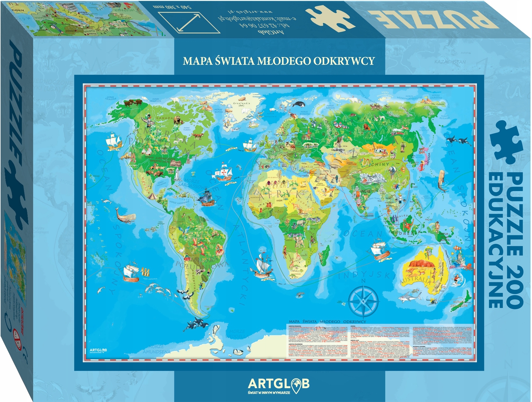 Мир юного исследователя — это головоломка с географической картой мира для детей, она может быть как познавательной, так и увлекательной. На картине с помощью красочных пиктограмм показаны континенты и топография суши, а также самые известные здания мира, животные, памятники природы и события. Это делает карту увлекательным источником знаний об истории и настоящем нашей планеты. В ней в интересной форме представлены сведения о географии, природе и культуре. Он стимулирует воображение, побуждает к приобретению знаний и вдохновляет. Это также отличный повод творчески провести время вместе между родителями и детьми. Качество и эстетика изготовления делают его идеальным подарком.