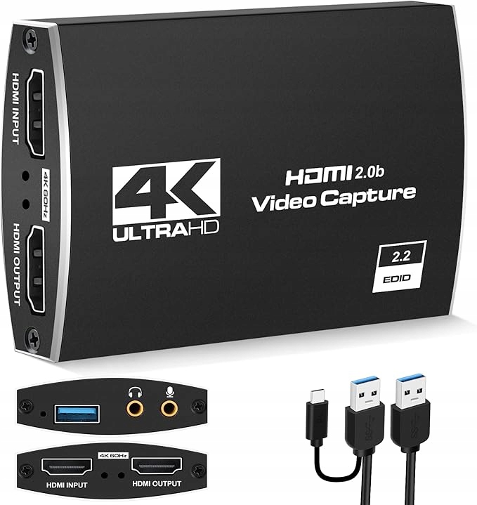 - Карта захвата USB 3.0, 1080p, 60 кадров в секунду. Игровая карта 4K оснащена высококачественным интеллектуальным чипом и изготовлена из алюминиевого сплава. Благодаря технологии High-Speed USB 3.0 игровая карта не вызывает задержек и обеспечивает легкую и быструю потоковую передачу, совместное использование и запись. Поддерживает входное разрешение HDMI до 4K, 60 Гц и запись видеосигналов до 1080p, 60 кадров в секунду для видеоигр и потоковой передачи мультимедиа с высоким качеством и плавностью.
