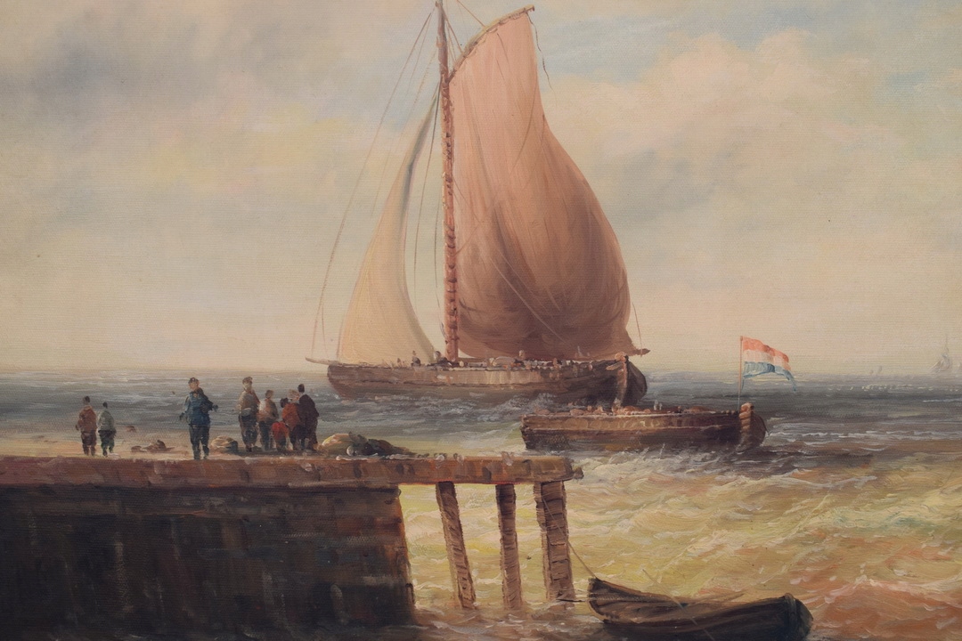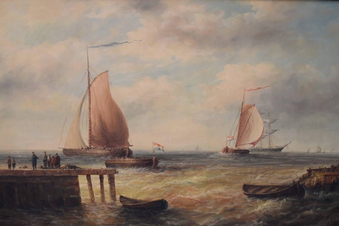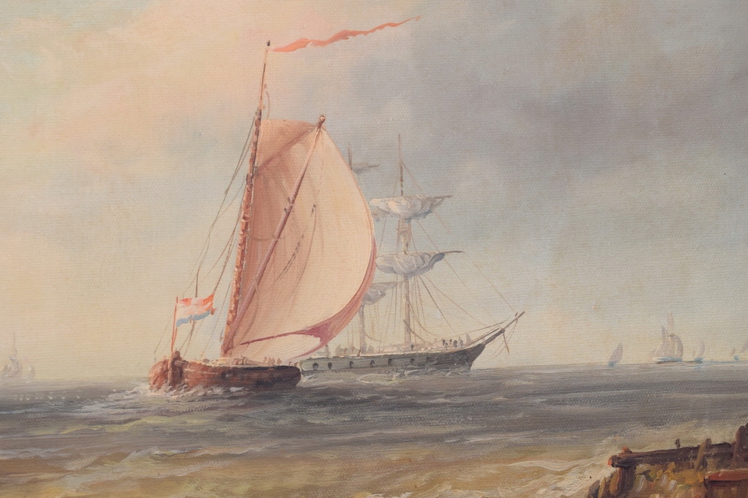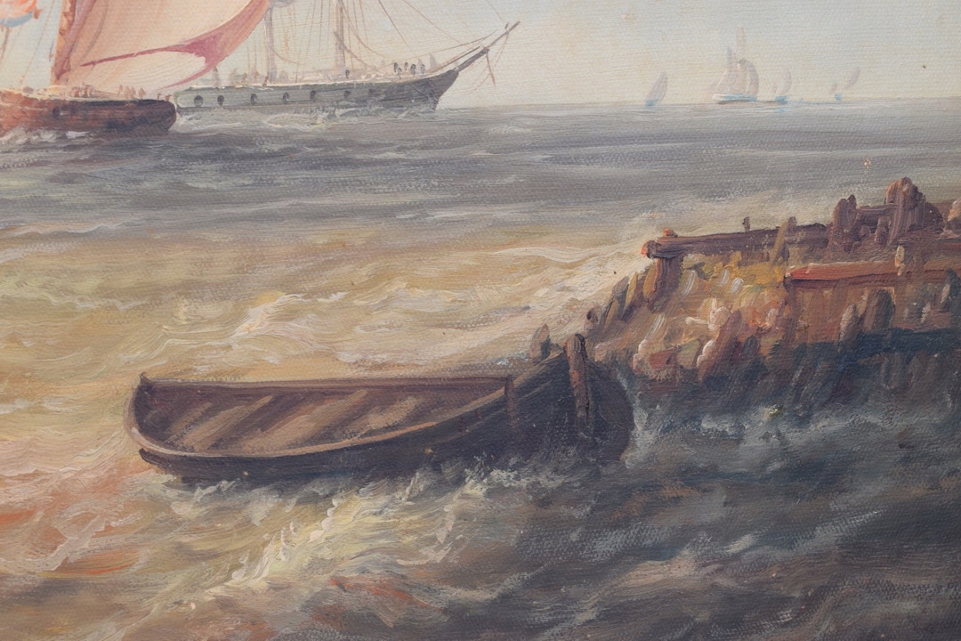 КАРТИНА - МОРСЬКІ КОРАБЛІ ВІТРИЛЬНИКИ - ЧОВЕН - Рама позолочена