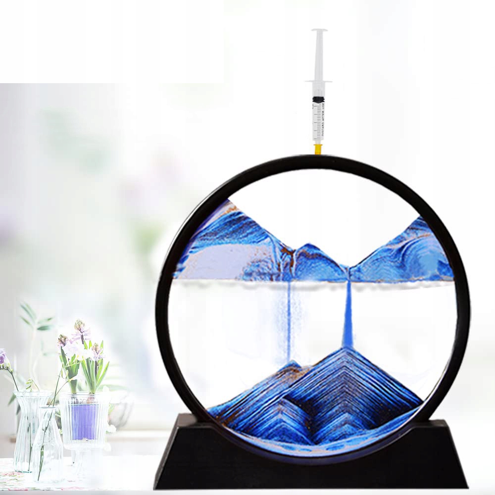 Название: 7-дюймовые трехмерные динамические песочные часы, 3D круглые движущиеся песочные часы, украшение стола для рисования песком, 18*19 см, синий