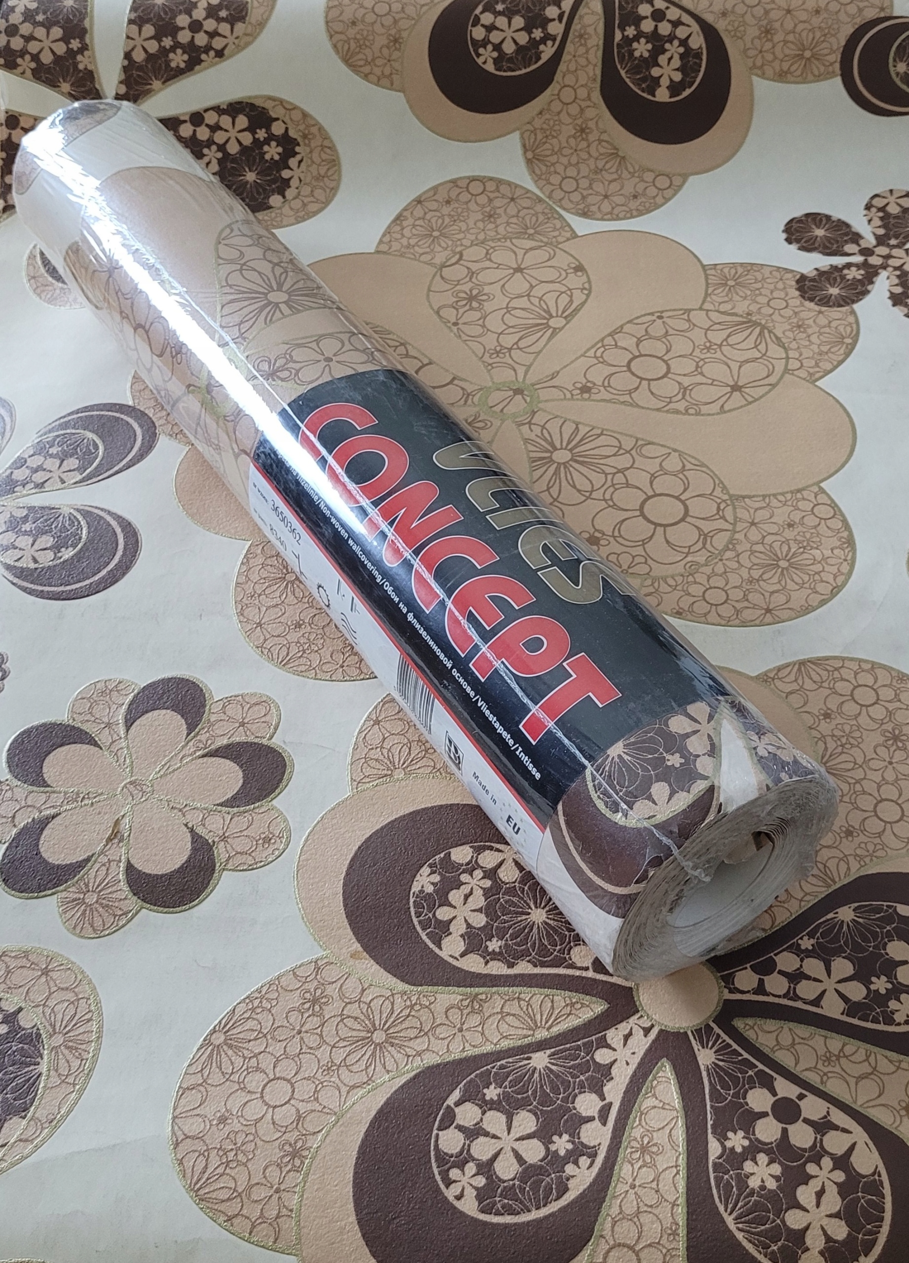 Красиво составленный узор из коричневых и бежевых цветов на кремовом фоне придаст оригинальный стиль. Кроме того, обои украшены мерцающими золотистыми контурами цветов.