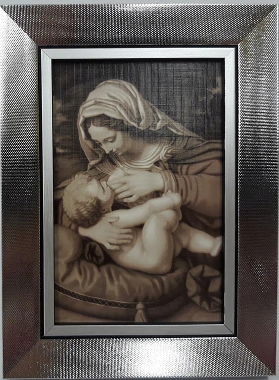 КАРТИНА «КОРМЛЕНИЕ БЛАГОСЛОВЕННОЙ МАТЕРИ» В СЕРЕБРЯНОЙ РАМЕ, цвет СЕПИЯ