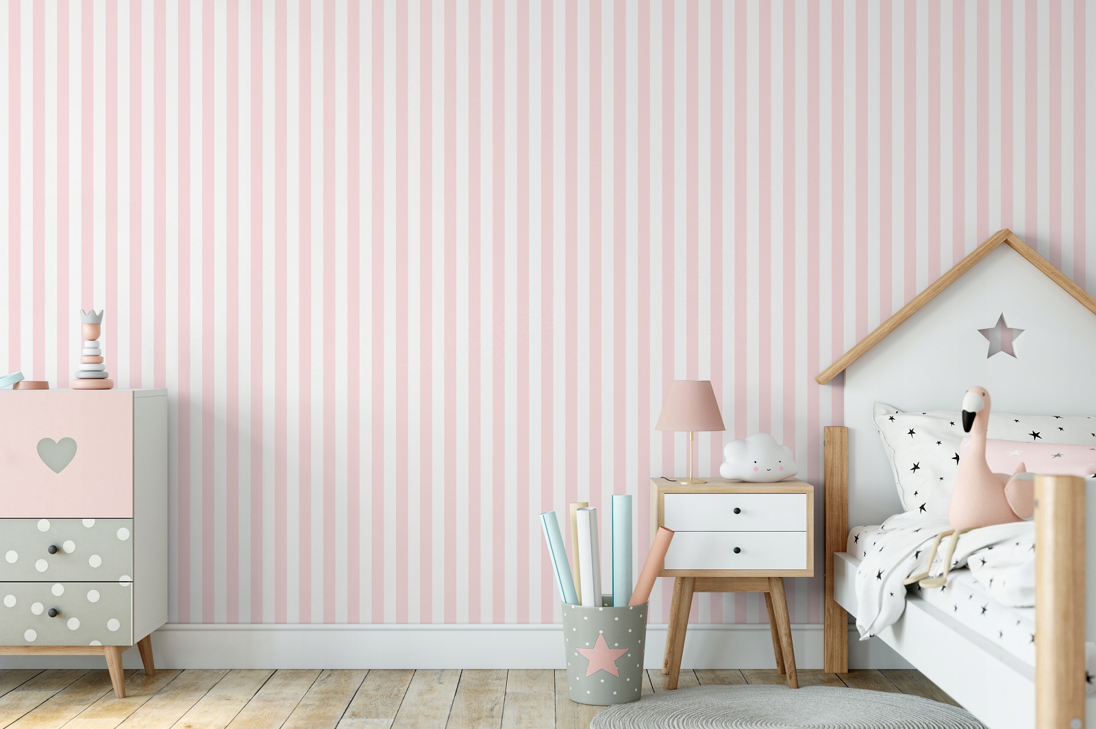 - Обои выполнены в кремово-белых и светло-розовых тонах.