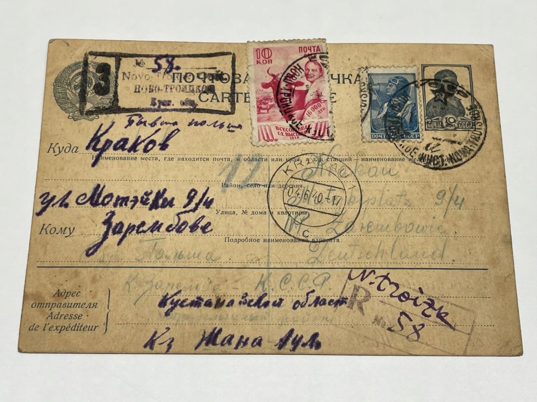 КАРТОЧКА ИЗ РОССИИ В КРАКОВ, НАПИСАННАЯ 10 МАЯ 1940 ГОДА