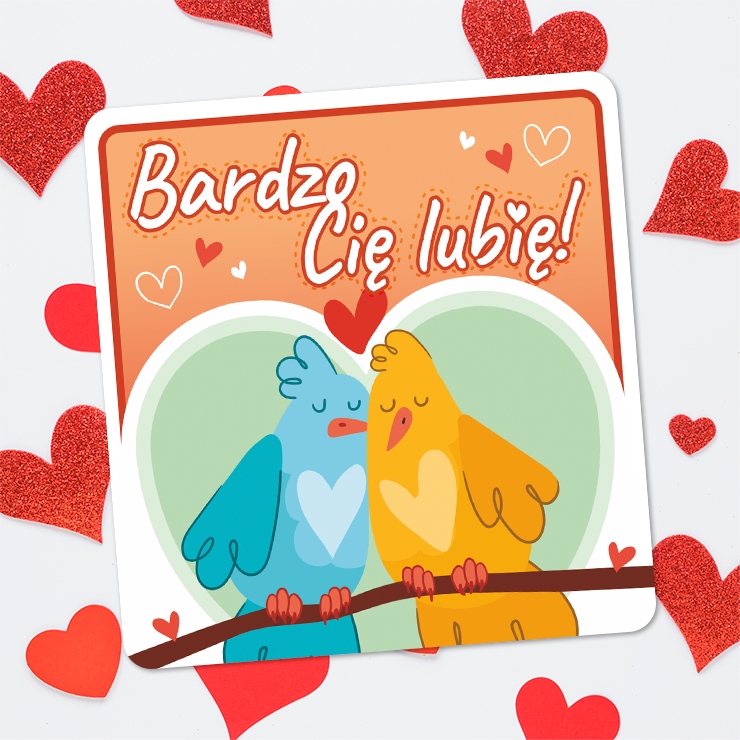 карта Валентина - ты мне очень нравишься! - Parakeets + конверт - Set