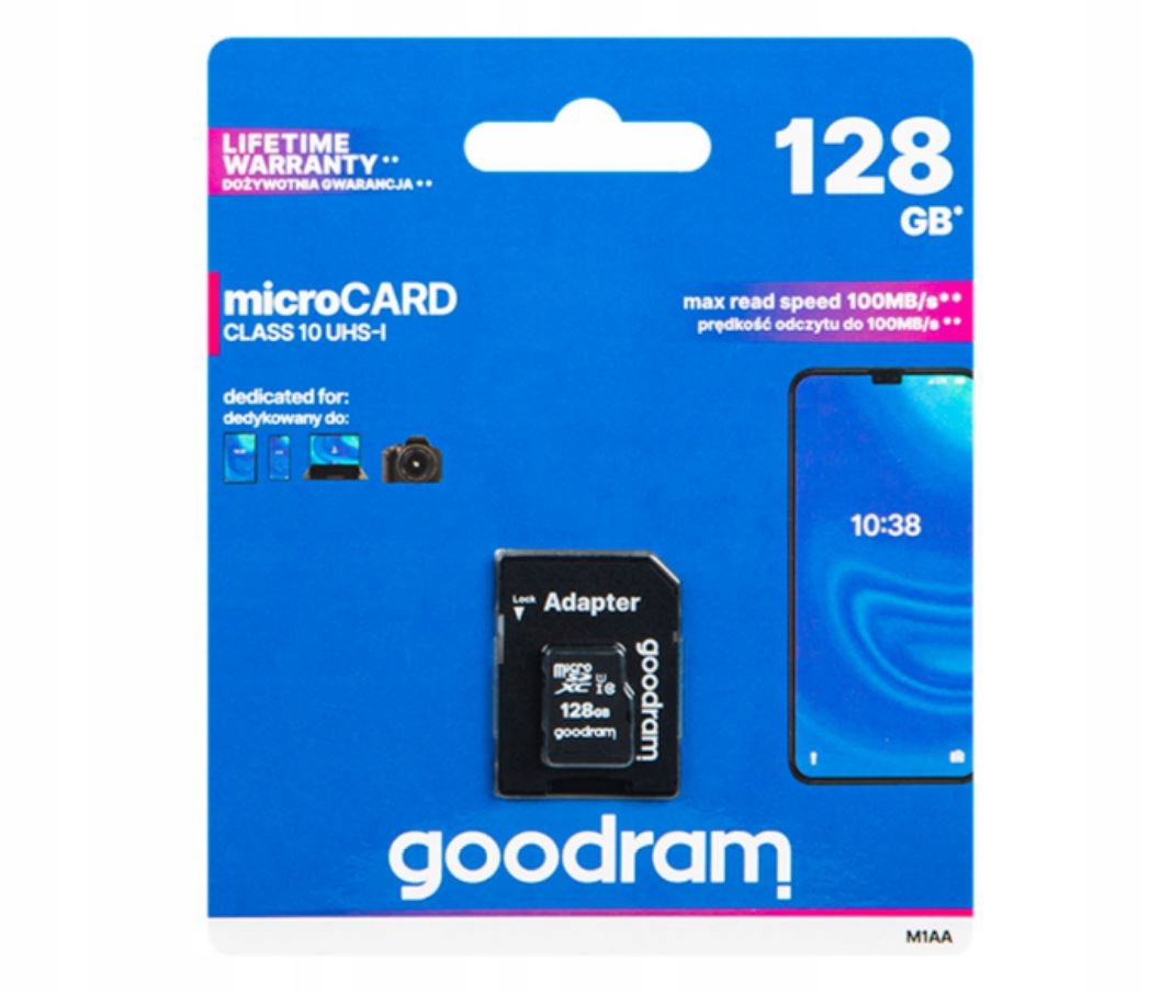 КАРТА MICRO SDXC 128 ГБ + АДАПТЕР SD CL10 GOODRAM UHS-I до 100 МБ/с КЛАСС 10