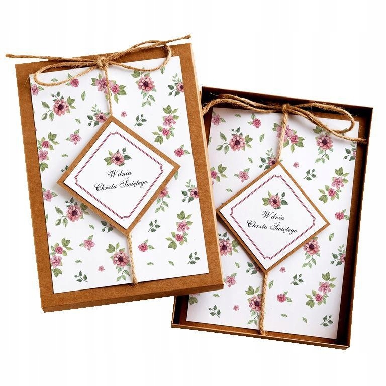 Надпись на открытке и коробочке - «В день Святого Крещения».