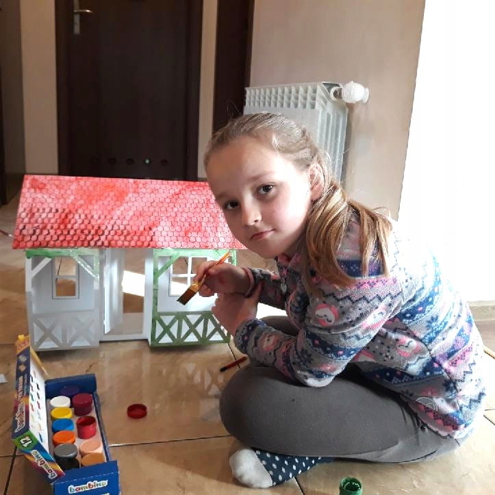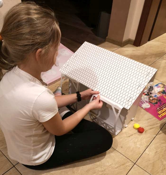 Картонный домик для росписи можно собрать без использования ножниц и клея. Помимо модели, в блоке также содержатся элементы, которые можно разместить рядом с зданием, например дерево и таблица. Игрушка с польской росписью станет украшением каждой детской спальни и домом для многих кукол. Эта экологическая креативная игрушка — идеальный подарок на любой случай.