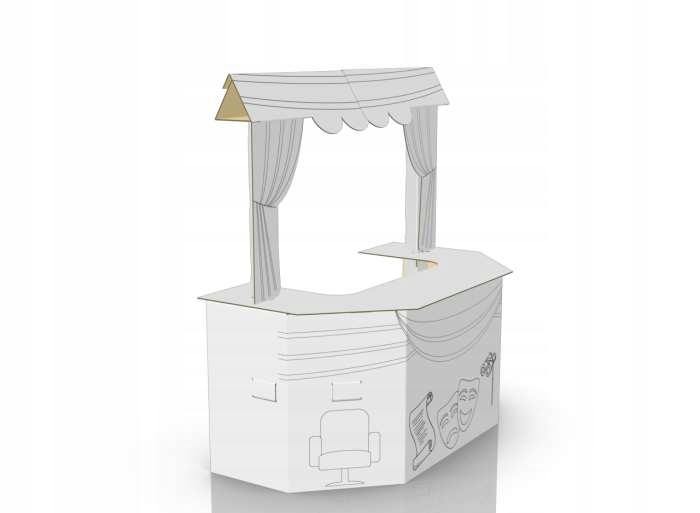 Украшение картонного театра с помощью красок, мелков и фломастеров – отличная игрушка для детей. Под большой стойкой, служащей сценой картонного театра, находится полка, на которой дети могут прятать куклы, мягкие игрушки и куклы участвуют в представлении или рождественском спектакле. Креативная игрушка будет развивать не только актерские способности, воображение и творческие способности вашего ребенка, но также ловкость рук и ловкость.