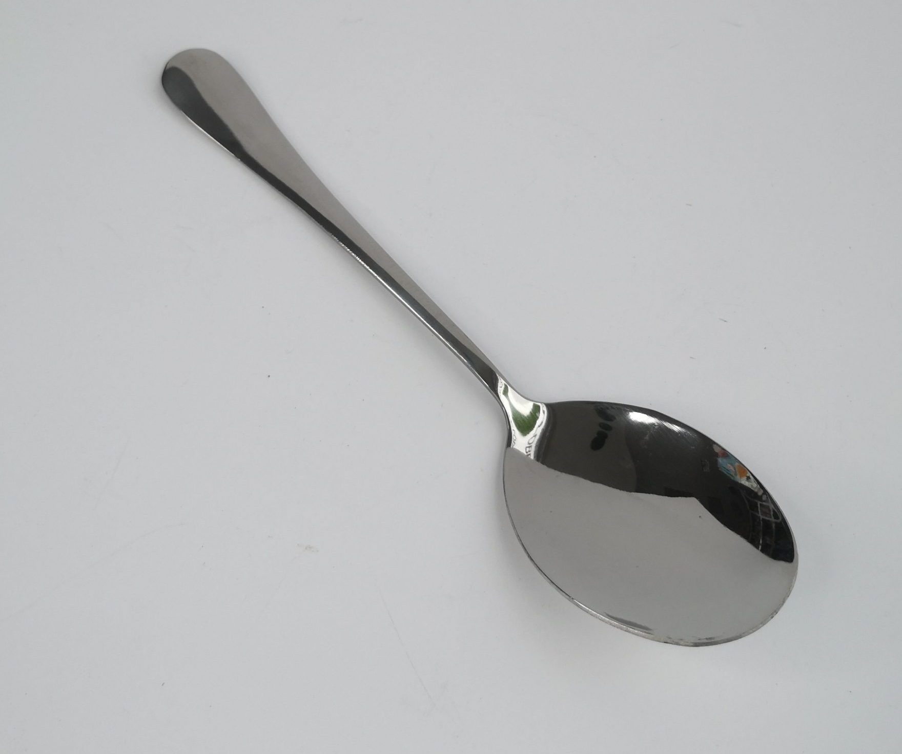 Большая ложка облегчит жизнь вам и вашим гостям. Идеально подходит для салатов, картофеля, риса. Благодаря его размеру вы можете легко заполнить свою тарелку. Ложка без украшений, благодаря которой она тонкая и элегантная. Это будет идеально для каждого стола, для каждого расположения. Размеры: длина ложки: 21,5 см, ширина: 5 см