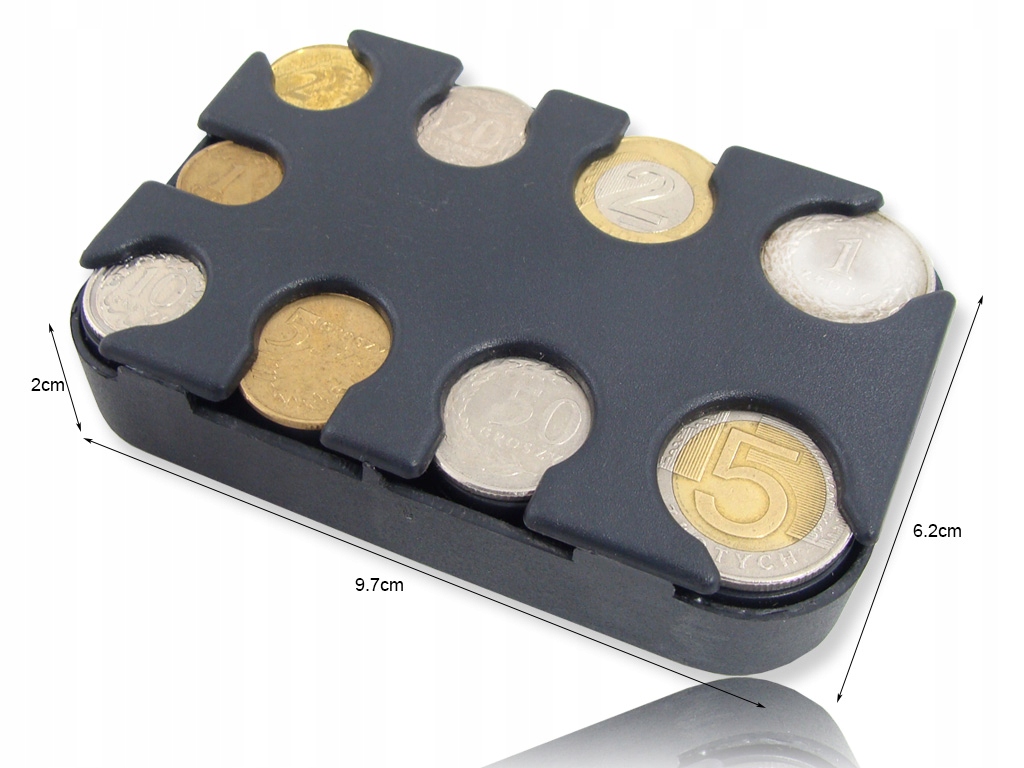 - Слоты для монет: 1 г, 2 г, 5 г, 10 г, 20 г, 50 г, 1 злотый, 2 злотых, 5 злотых.