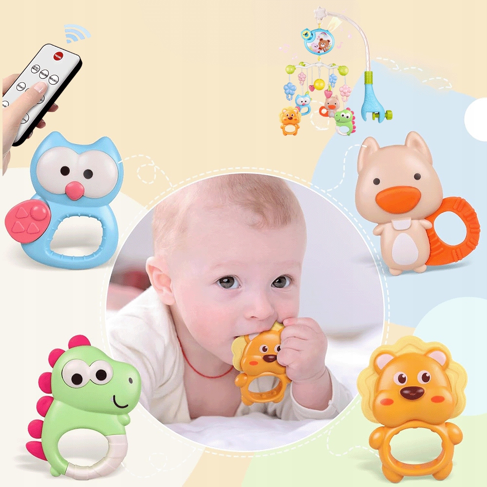 Карусель с музыкой и проектором: она не только воспроизводит успокаивающие мелодии (например, «Звуки дождя» или «На прекрасном голубом Дунае»), но и проецирует волшебные изображения животных на потолок или стену! 🦁🦉🦊
