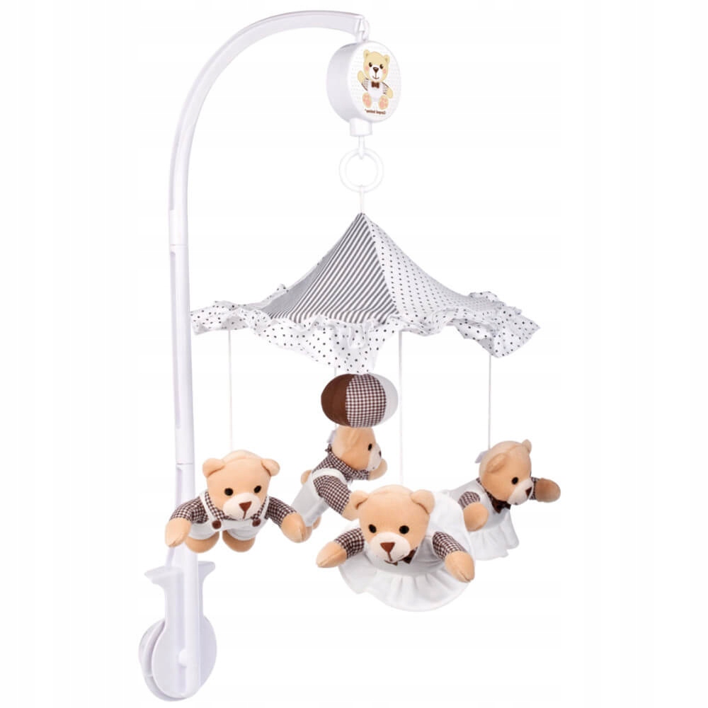 Красочная карусель с музыкальной шкатулкой МИШКИ ТЕДДИ С КАНОПОЙ предназначена для детей, которые еще не умеют передвигаться самостоятельно.