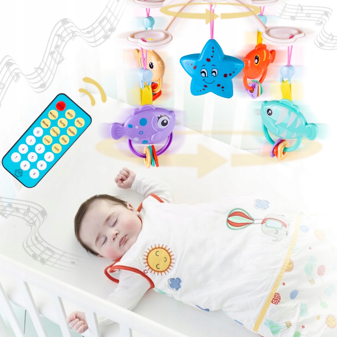 Музыкальная карусель, музыкальная шкатулка для кроватки, управляемая с пульта. Наш мобиль вращается на 360° и имеет множество звуков, мелодий и световых эффектов - проектор.