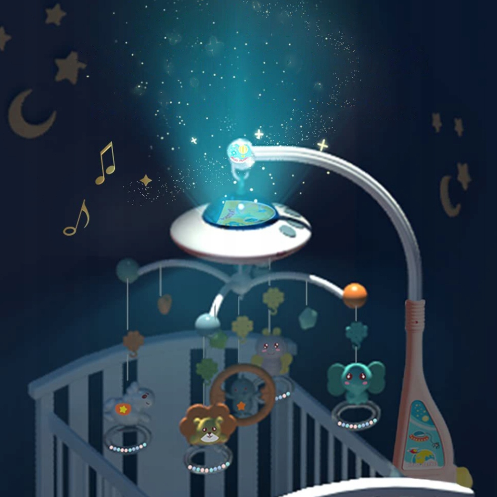 💯 Музыкальная шкатулка-карусель для кроватки с дистанционным управлением небесным проектором и 5 животными! 🚀