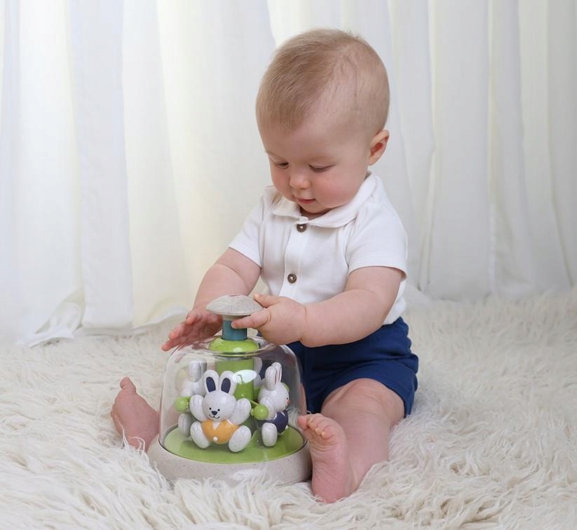Карусель с кроликами Tolo Bio - это игрушка, которая дает малышу большую радость и образовательное веселье. Веселье включает в себя нажатие кнопки вверху, что заставляет символов начинать вращаться. Наблюдая за тем, как красочные персонажи увлекательны для маленьких детей, и благодаря легкому обслуживанию игрушка становится идеальным выбором для изучения координации ручного значения и понять причину и следствие. Карусель приветствует и привлекает малыша, поддерживая его моторное и языковое развитие. Благодаря простому дизайну, простому использованию и образовательным функциям, эта игрушка является идеальным выбором для совместной игры и обучения.