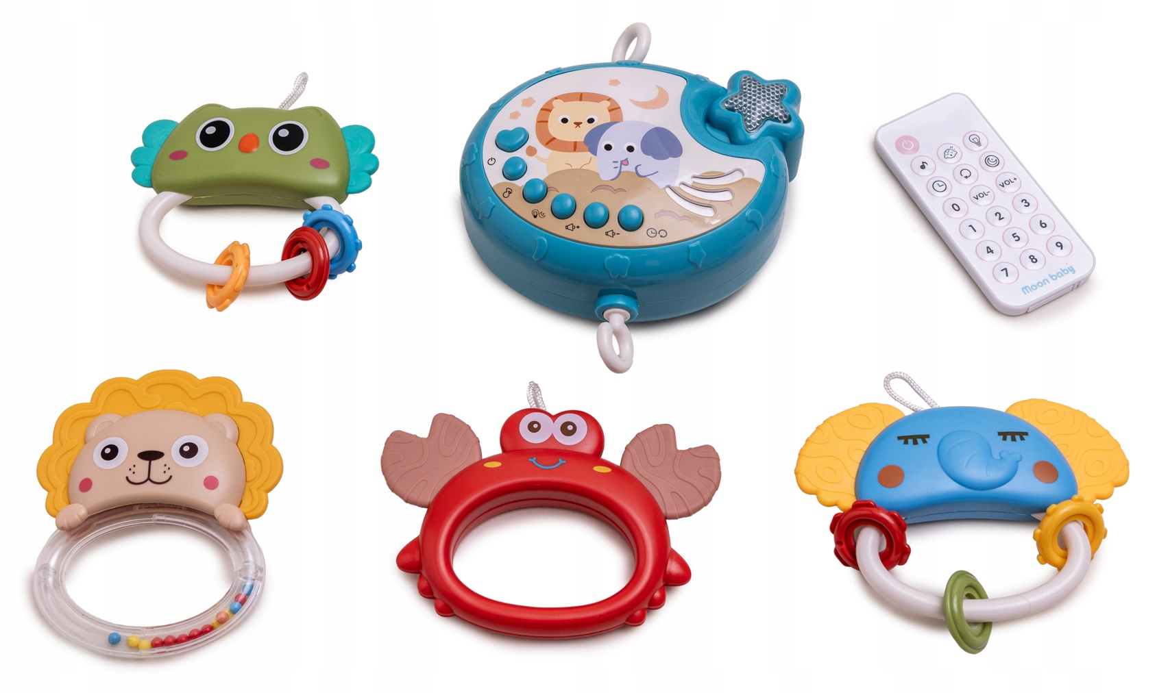 подвески можно легко отцепить, что позволяет использовать их в качестве отдельных игрушек, таких как синяки или гремучие синяки, , когда ребенок не использует детские карусели.