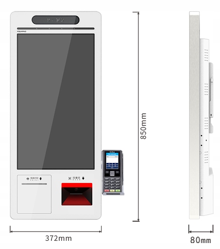 Преимущества смешного киоска fp -gt self -service: -Оптимизация работы кассиров магазинов; - Большой, яркий сенсорный дисплей с временем реакции 3 мс; - Android 11 Операционная система; -Процессор RCKCHIP RK3568, четырехъядерный Cortex-A55 до 2 ГГц; - Wi-Fi беспроводная сеть; - Wired Interfaces Serial/Com/RS-232, USB; - 80 мм тепловой принтер с автоматическим резаком; - Стильная, эргономичная форма.