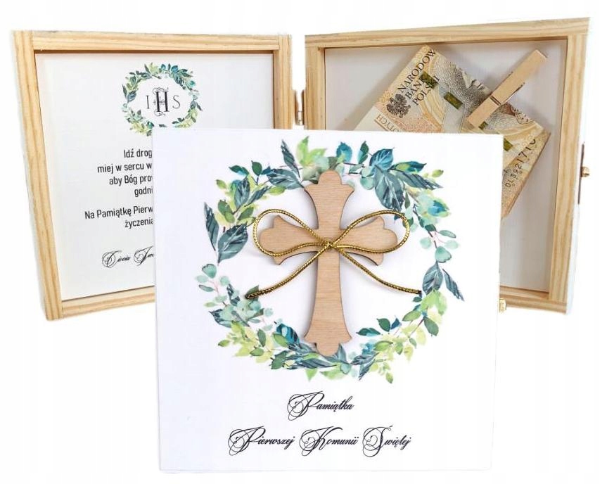 - сверху - принт + деревянный крест (декоративный золотой бантик)