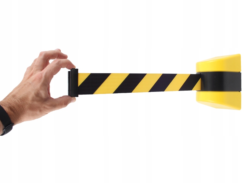 Кассета изготовлена из прочного материала, что делает характеризуется эстетичным внешним видом. Желто-черный цвет выдвижной ленты обеспечивает высокую видимость и позволяет движущимся людям интуитивно определить маршрут обозначенного маршрута связи или какой проход или объект заблокирован.