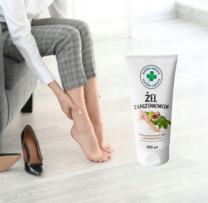 гель для усталых ног с каштаном , горьким апельсином и ментолом, подходит для ног, которые воспаливают . Кроме того, он поддерживает увлажнение сухой кожи тела. Формула активного геля содержит ингредиенты, которые уменьшают ощущение тяжелых и уставших ног.