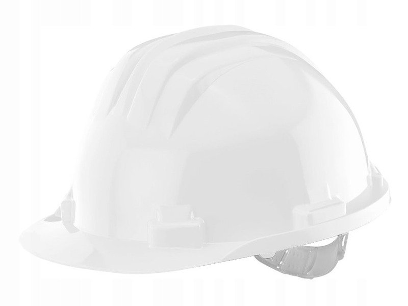 Сертифицированный белый защитный шлем NEO (арт. № 97-201) изготовлен из материала HDPE. Окружность основного ремня регулируется от 55 до 65 см, что позволяет подогнать шлем по размеру головы. Шлем оснащен 6-точечным ремнем безопасности и защитной лентой. Вес изделия составляет 322 г. Шлем защищает от травм, вызванных падающими предметами, такими как камни, черепица, кирпичи и другие подобные предметы. Подходит для использования в электроустановках - защищает от электрических разрядов напряжением 1000В переменного тока и 1500В постоянного тока (установки низкого напряжения).