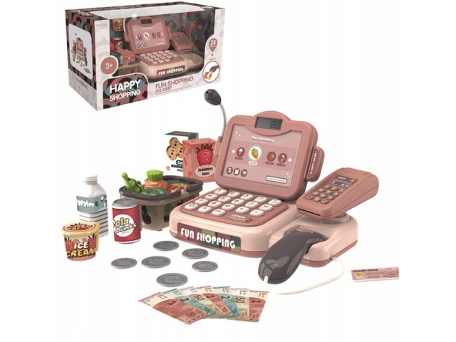Касовый аппарат поставляется с набором аксессуаров, которые делают игру еще более реалистичной. Это имитации продуктов питания, банкноты, монеты и платежные карты.