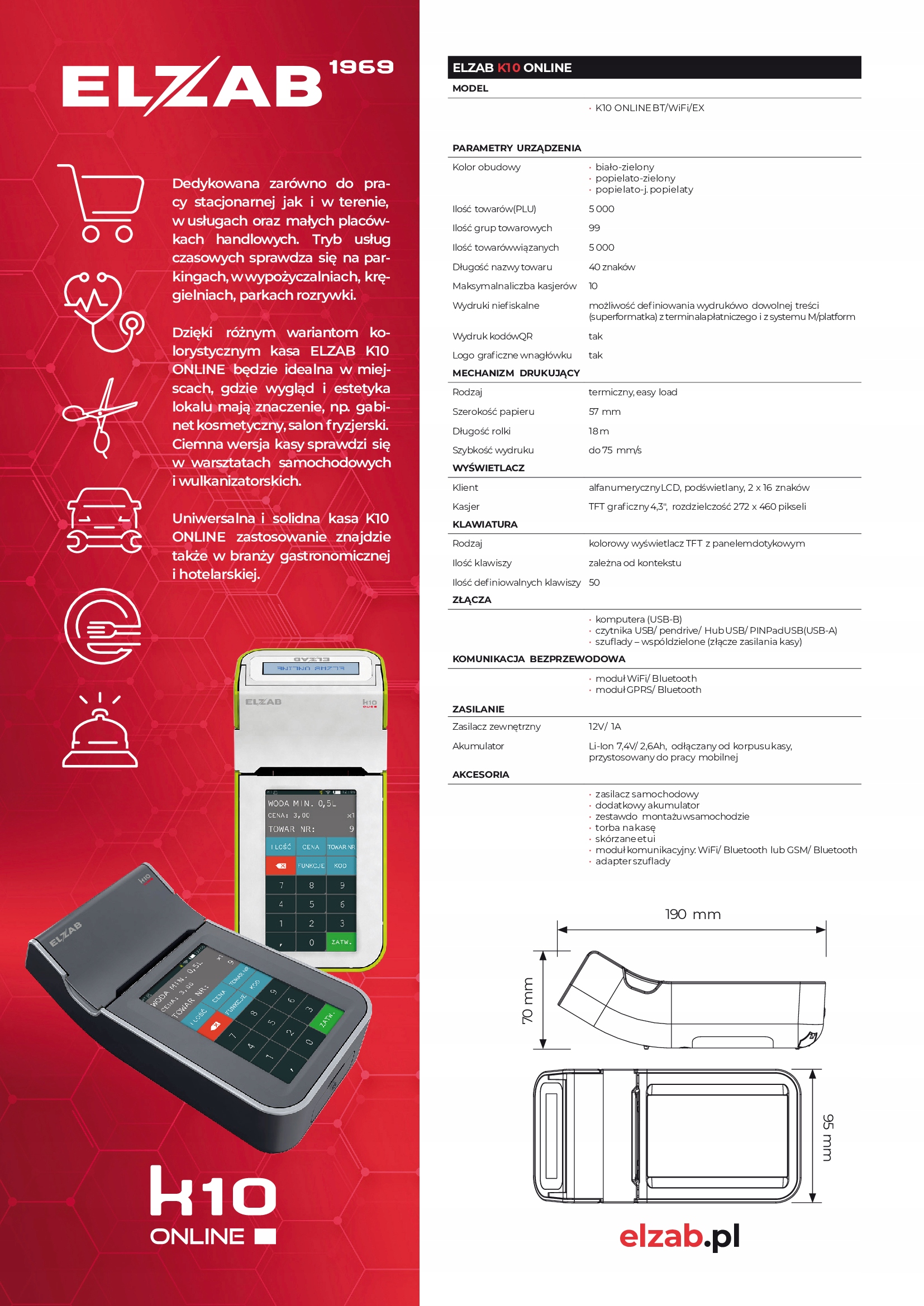 МОБИЛЬНАЯ КАССА ELZAB K10 ОНЛАЙН WIFI + СЕРВИСНЫЕ УСЛУГИ