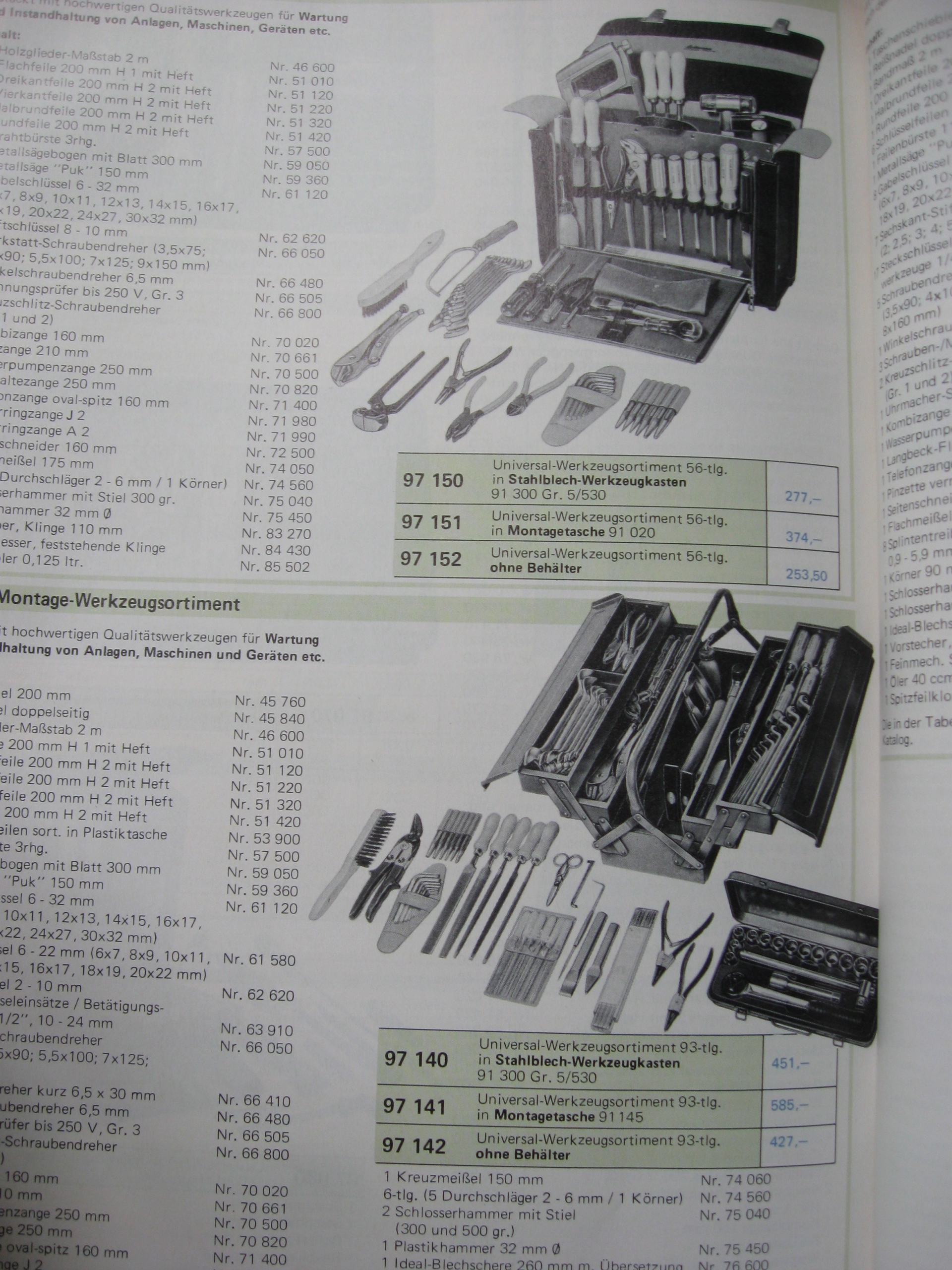 Каталог профессиональных инструментов от Mager & Wedemeyer, содержит около 27 000 инструментов для резки, крепления, измерения, распиливания, распиливания, шлифования, а также ручные инструменты и рабочее оборудование, такое как верстаки и рабочие шкафы.
