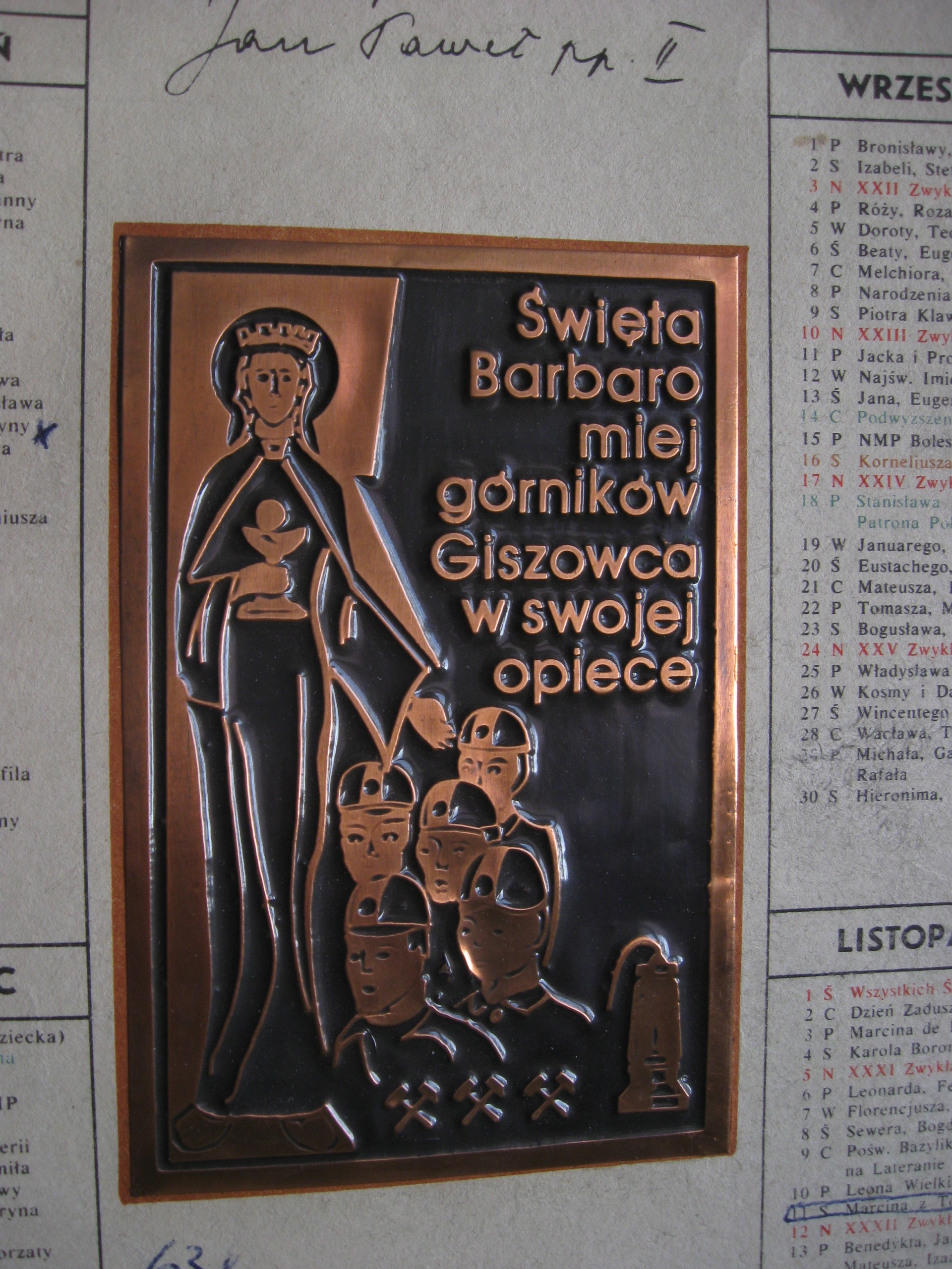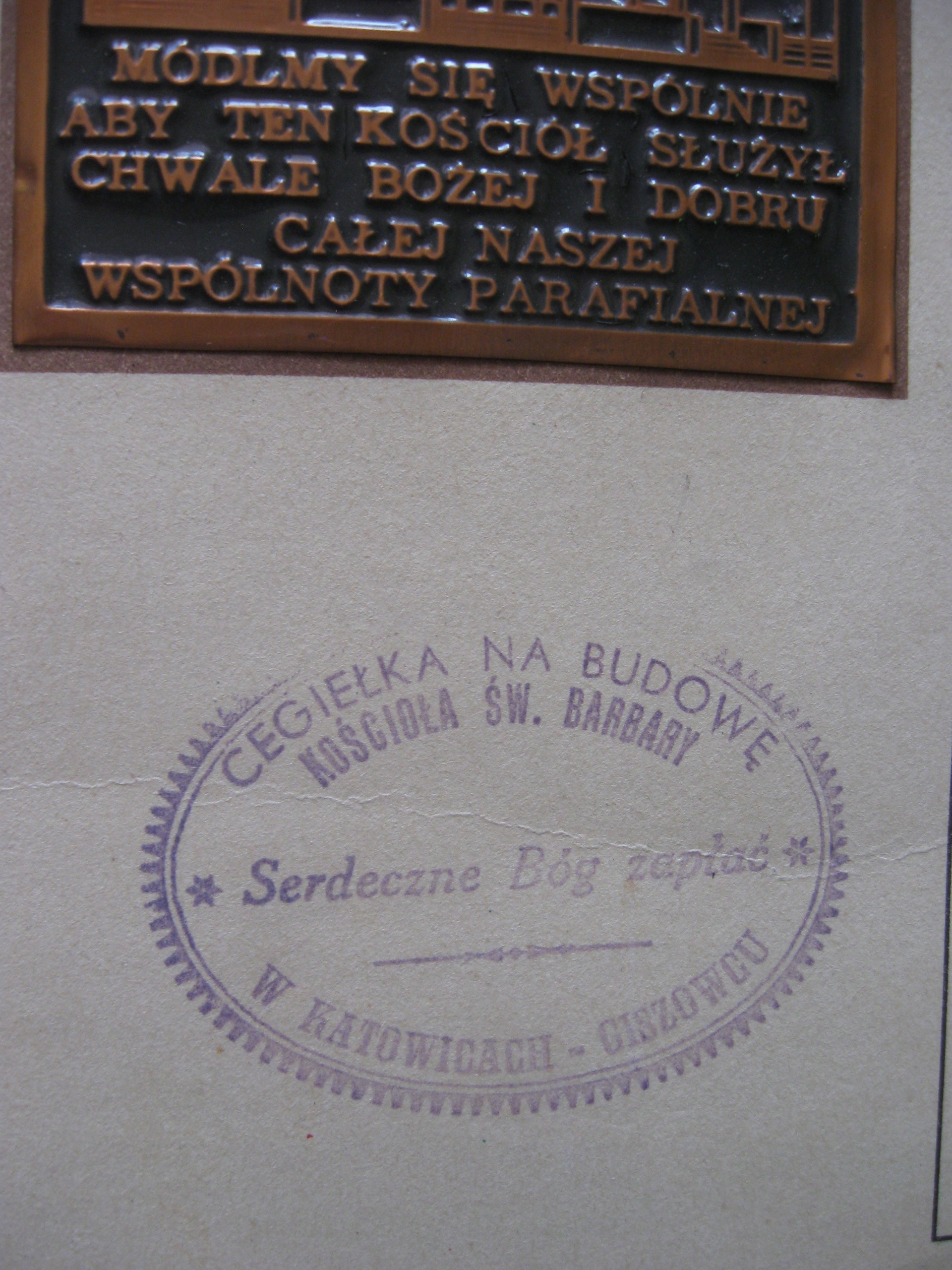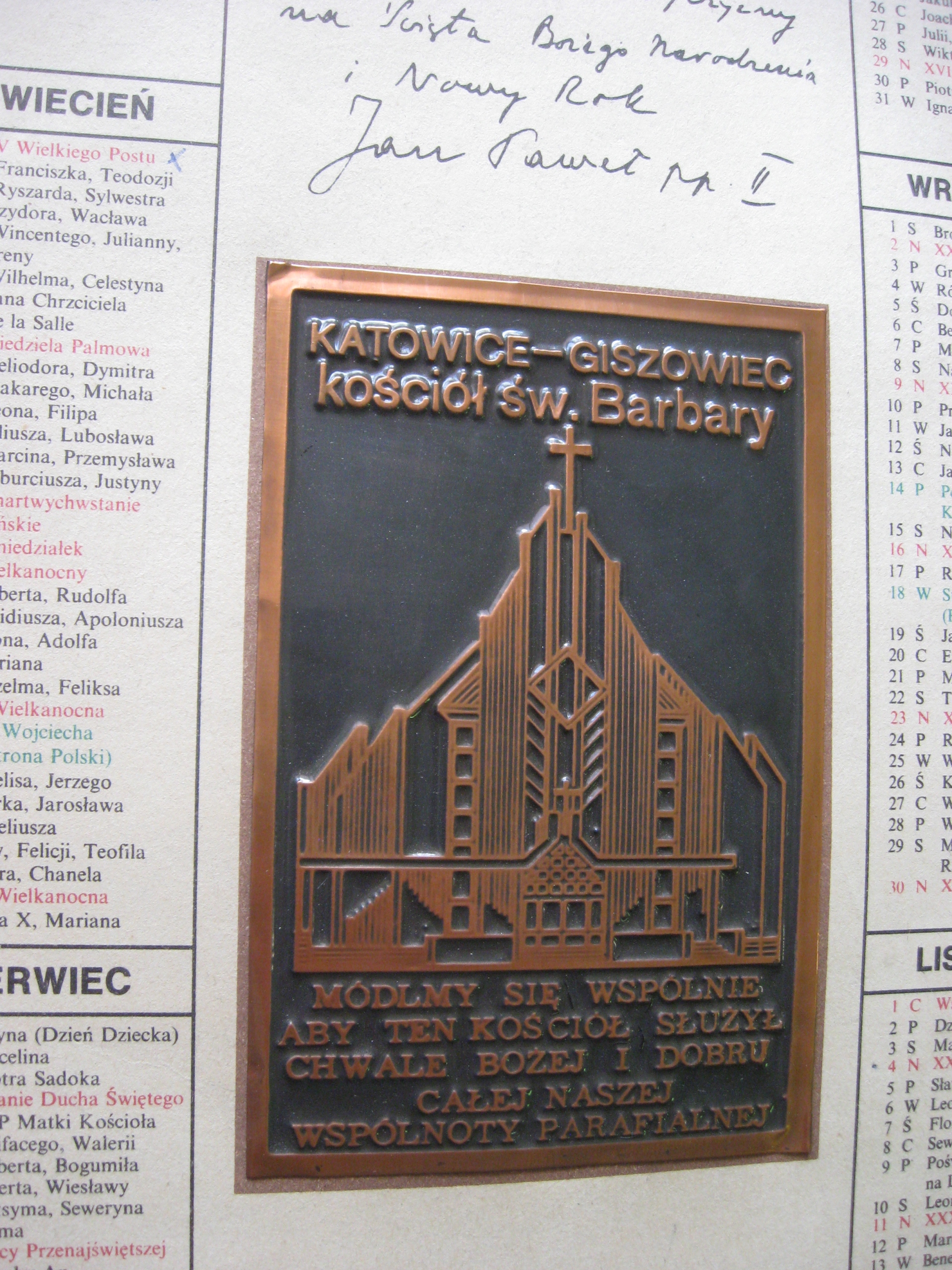 Три больших календаря (на 1989, 1990 и 1991 годы) - кирпичики с вклеенной медной пластиной - для строительство церкви св. Варвара в Катовице-Гишовце. Документы: