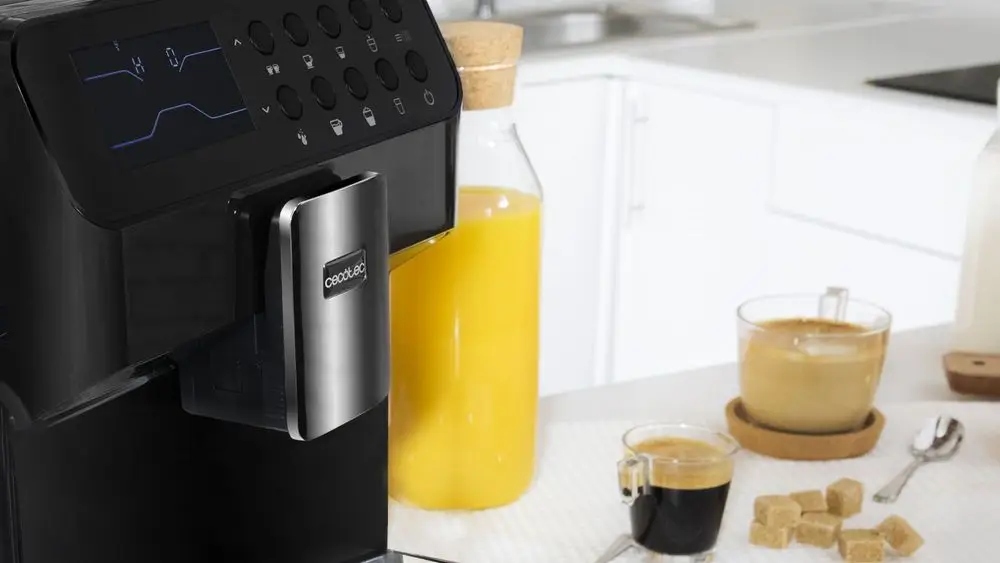 Cecotec Power Matic-ccino 7000 Series Nera — кофемашина, отличающаяся функцией помола кофе и функцией возможность приготовления различных видов напитков и ЖК-дисплей. Современный дизайн устройства также заслуживает отдельного внимания, ведь он придаст вашей кухне неповторимый характер. Устройство может похвастаться мощностью 1400 Вт, а система AllCappuccino сама готовит латте и капучино, автоматически добавляя кофе, молоко или пенку в точном количестве прямо в чашку.