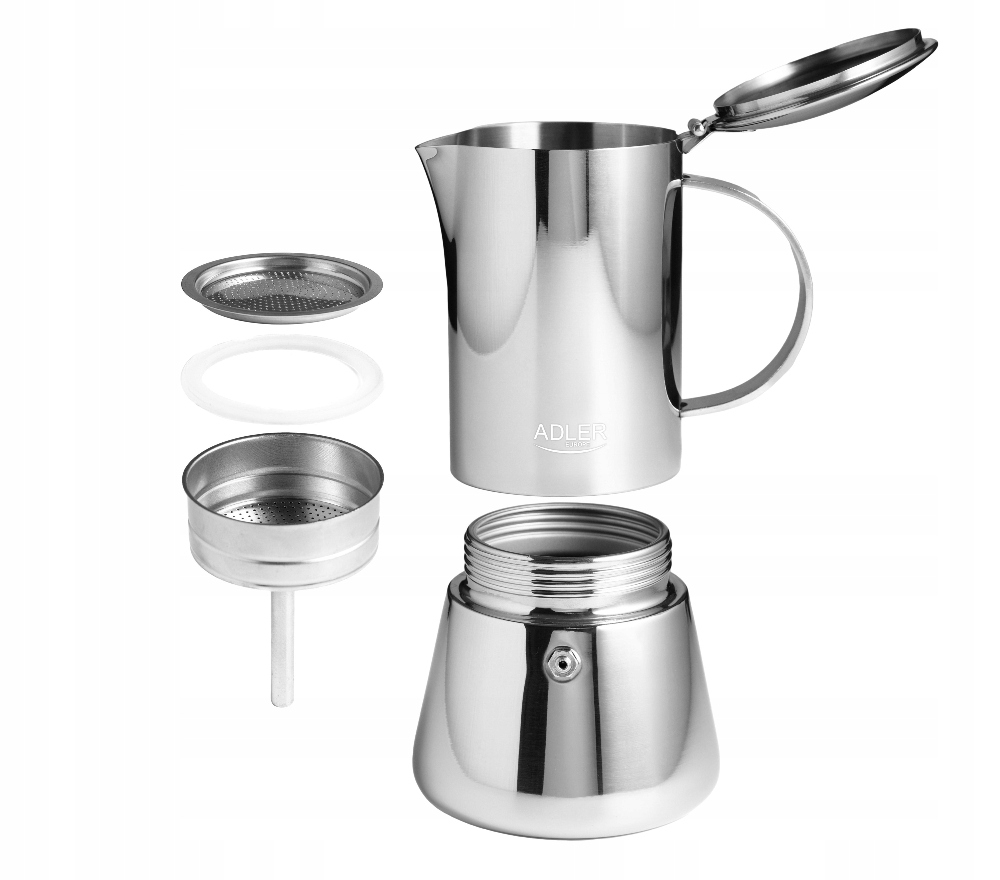 Благодаря кофеварке Adler мечта об идеальном итальянском эспрессо становится реальностью! Эта уникальная кофемашина подарит вам не только насыщенный вкус и аромат кофе, но также эстетичный внешний вид и удобство в использовании. Что делает кофеварки Adler такими особенными? Прежде всего, простота использования порадует даже неопытных бариста. Просто налейте воду в нижнюю емкость, наполните ситечко любимым кофе, закройте верхнюю емкость и поставьте на плиту.