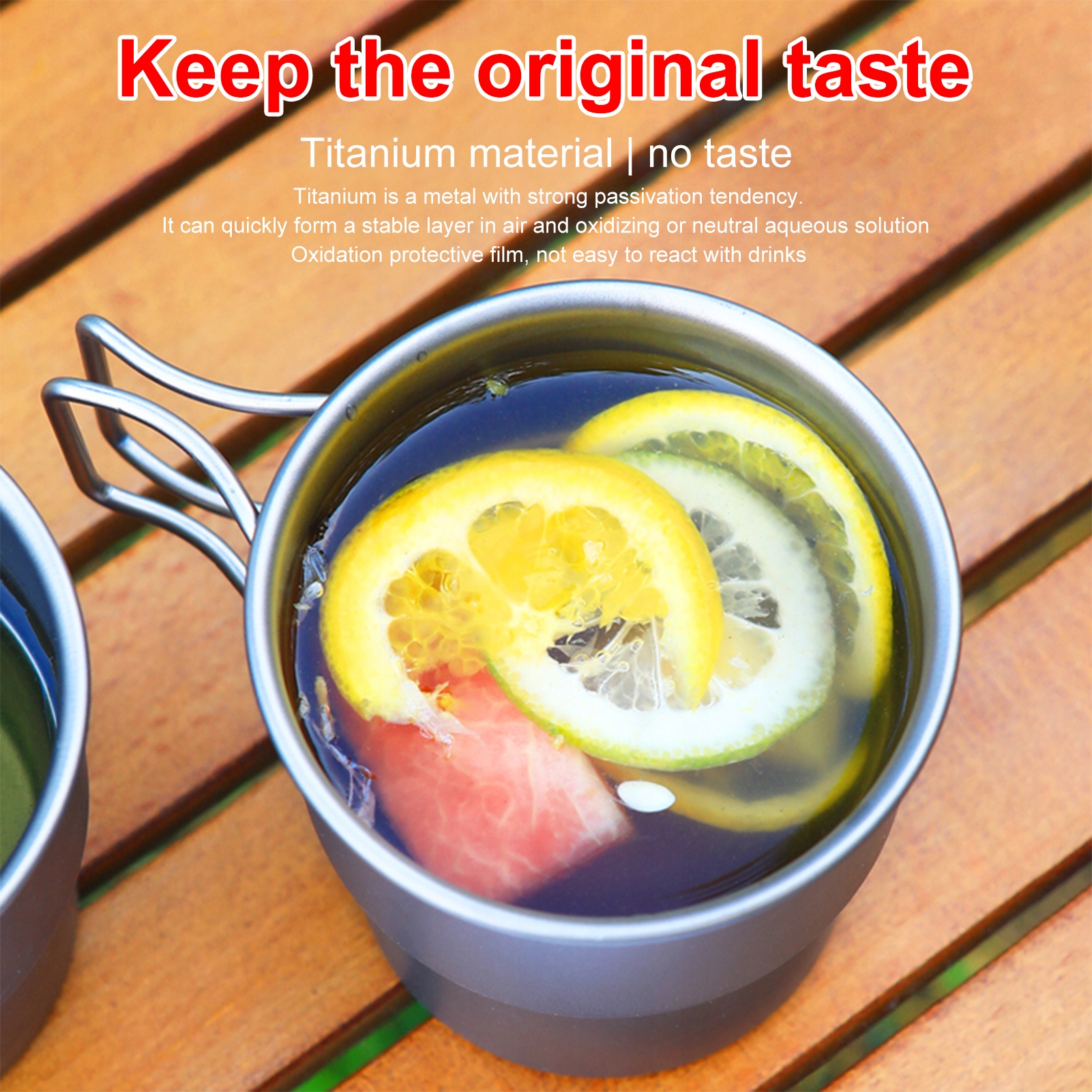 3. Чистый титановый материал: изготовлен из 99% чистого титана, эти чашки легкие и не влияют на вкус ваших напитков.